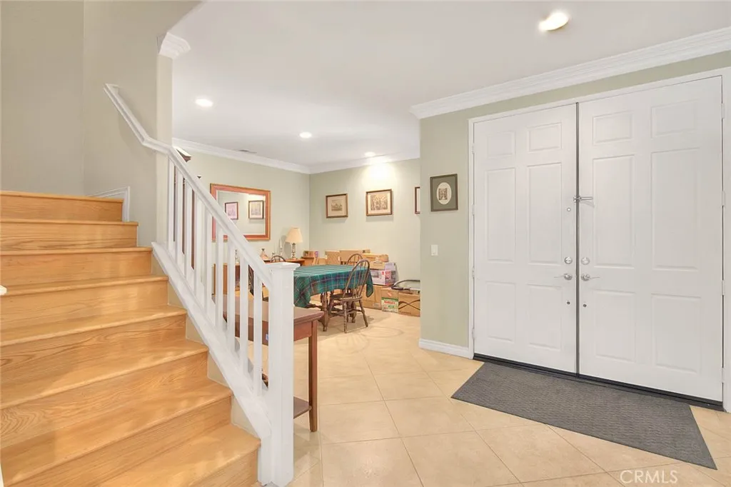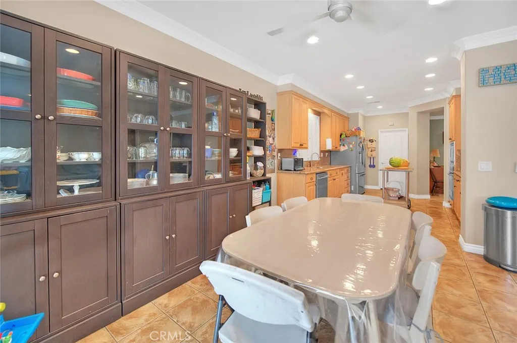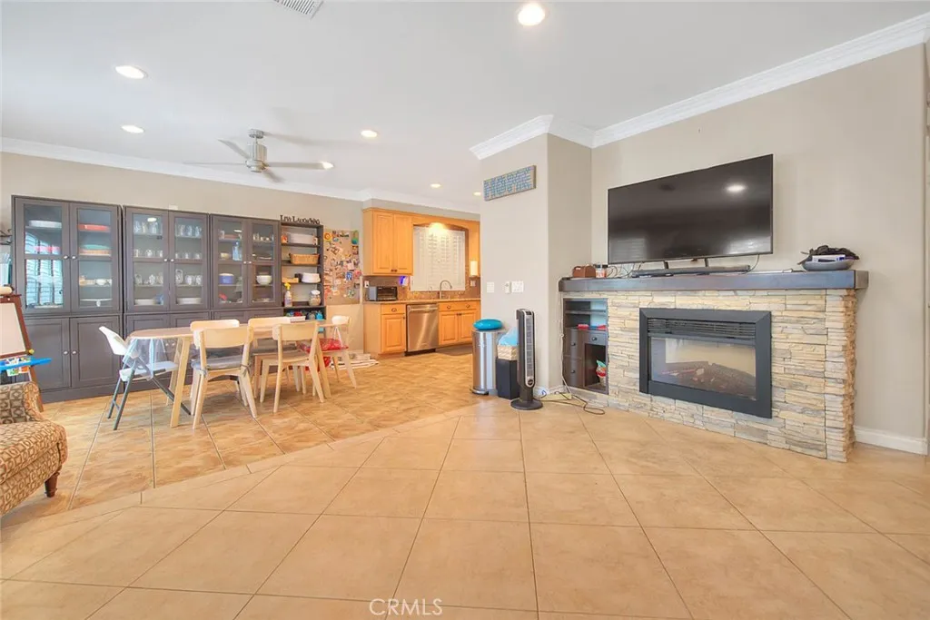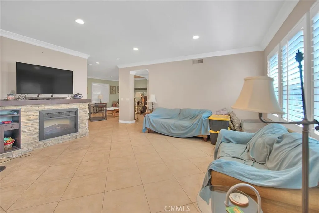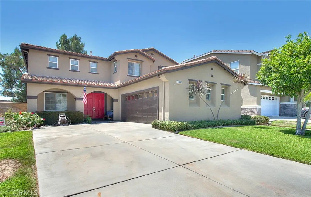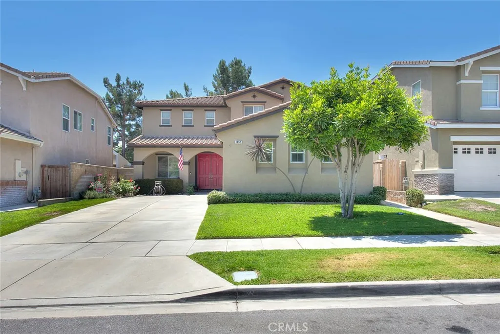 Welcome home to 1855 Ambrosia in one of Upland's highly desirable communities. The Colonies-with no Mello Roos & low HOA! This 2-story Kaufman & Broad home is located in a master-planned community which boasts 2912 square feet of living space, with an open floor plan, generous sized bedrooms and ample storage with 4 bedrooms, 2.5 bathrooms, and a flexible floor plan perfect for families or professionals seeking space and functionality. The downstairs floor plan consists of a half bathroom, a bedroom perfect for a home office or guests, a formal living room and dining room, kitchen, laundry room and an informal dining area. The kitchen has high end cabinetry, with stainless steel appliances, built-in-oven, microwave, and dishwasher with granite countertops. Located off the kitchen is a spacious family room with a fireplace to cozy-up on chilly winter nights. Upstairs, along the wooden staircase, there is a spacious loft with wood flooring and cabinetry - perfect for a child's play area, game-media room, or added living area. Additionally, there are two considerable sized bedrooms, and a full sized bathroom with granite countertops. Double-entry doors lead to the large primary bedroom with an en-suite and a large walk-in closet. There is tile, wood and carpeted flooring, plantation shutters, crown molding and recessed lighting throughout the home. The backyard has limited maintenance, with stone tiles, a wet bar and an above ground hot tub - a wonderful space to unwind at the end of a workday to host and entertain friends and family. This home is within walking distance to th