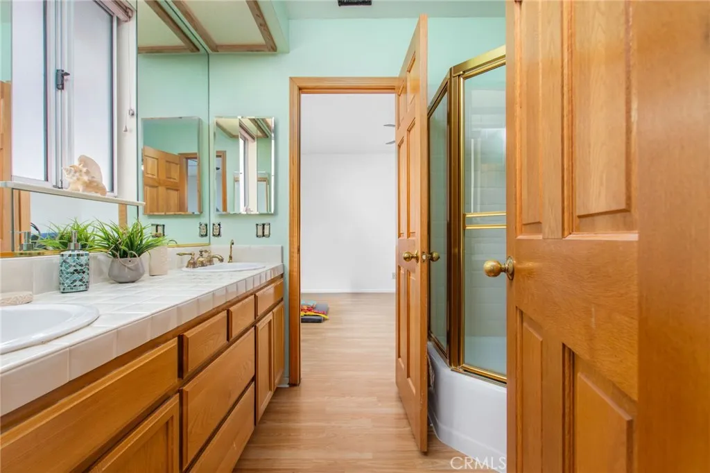 Welcome to 22811 Cove View Street in the guard-gated community of Canyon Lake, offering approximately 3,000 sq ft with 4 bedrooms, 3.5 bathrooms, a 3-car garage, and a highly sought-after flat driveway, all just a short walk to the Canyon Lake Lodge. Built in 1987, this spacious home has ADU POTENTIAL and showcases tall ceilings and vaulted architecture in the living room, complemented by formal living and dining areas that provide an excellent canvas for a full remodel or modern transformation. A skylit powder room and large indoor laundry room with sink add convenience upstairs. The main level includes the primary suite and additional bedrooms with a Jack-and-Jill layout, while the lower level offers versatile living space with 1 bedroom, 1 bathroom, a living area, and a wet bar easily convertible to a kitchenette, plus a generous utility closet for storage or secondary laundry. With the option to enclose stair access, the downstairs could function as separate living quarters or ADU-style space. An expansive rear deck captures city light and mountain views and features a sunken jacuzzi (currently inoperable), built-in seating, fruit trees, and additional under-house storage. A rare opportunity to renovate and add value in one of Canyon Lakes most centrally located neighborhoods. Canyon Lake is a 24 hour guard gated community with a private 525 acre lake, premiere wakeboarding and waterskiing, 18 hole SCGA rated golf course, Lakefront pool and clubhouse, Lakefront RV park, Equestrian center, tennis, basketball & pickleball courts, baseball fields, 4 beaches, 9 parks, an am
