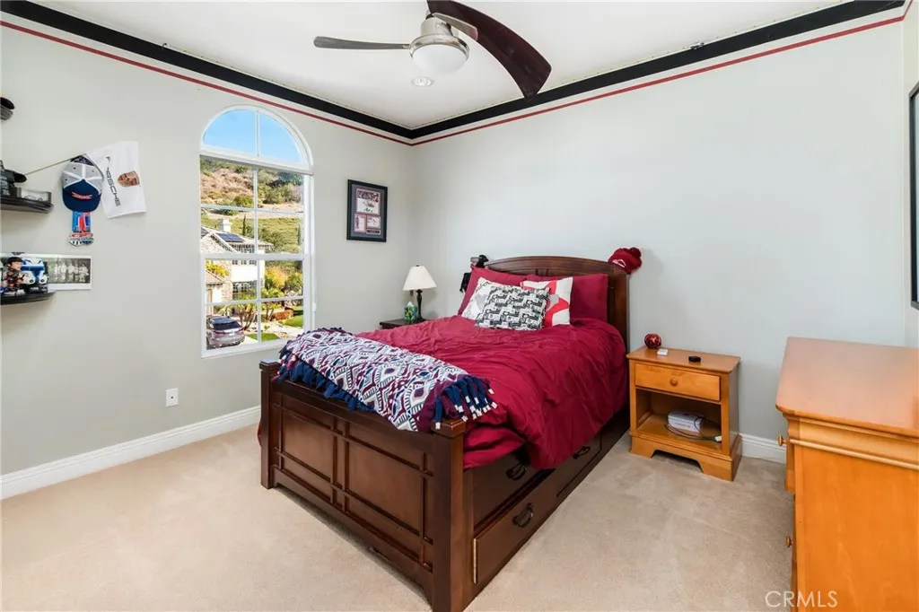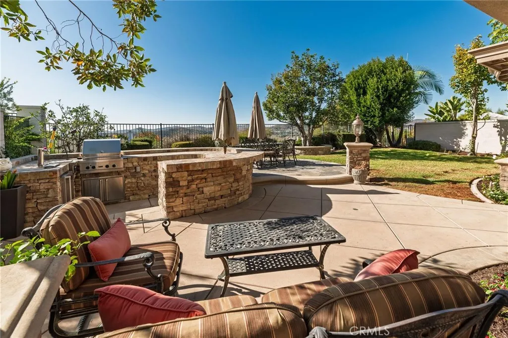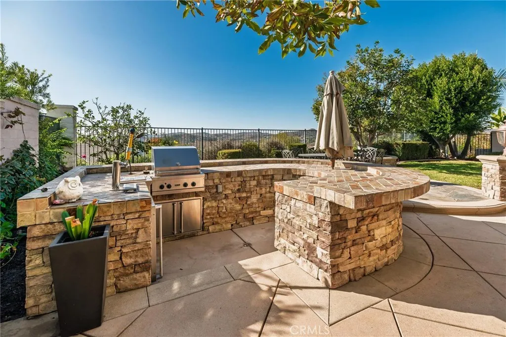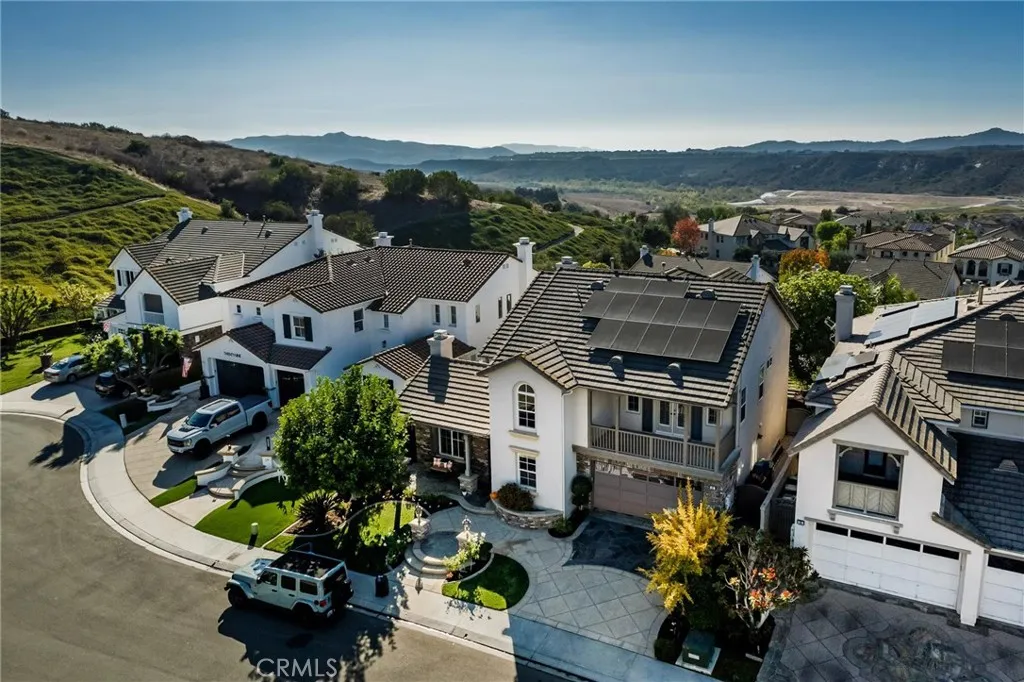 Welcome to an exceptional residence where design, comfort, and resort-style living converge. Situated within a prestigious 24-hour gated golf and health club community, this beautifully appointed home offers luxury, privacy, and breathtaking westerly sunset views. Step inside to discover elegant travertine floors, soaring ceilings, and light-filled living spaces designed for both everyday living and sophisticated entertaining. Custom built-in shelving and entertainment niches add architectural character and functionality throughout the home. The expansive floor plan offers generous formal and casual living areas, anchored by a well-equipped kitchen that flows seamlessly into the family room creating the perfect environment for gatherings large or small. Upstairs, a spacious second-story loft provides incredible flexibility, ideal for a media room, executive office, game space, or additional lounge area. The primary suite serves as a private retreat, thoughtfully designed for comfort and relaxation. Secondary bedrooms are well-proportioned and versatile. Entry level en suite accommodates guests or multigenerational living. Step outside to experience true Southern California living. The backyard captures a gorgeous westerly view and features a built-in stainless-steel barbeque and 2-tap kegerator perfect for hosting unforgettable sunset evenings with friends and family. Additional highlights include a leased solar system providing energy efficiency and reduced utility costs. Located within an exclusive 24-hour guard-gated golf and health club community offering premier amen