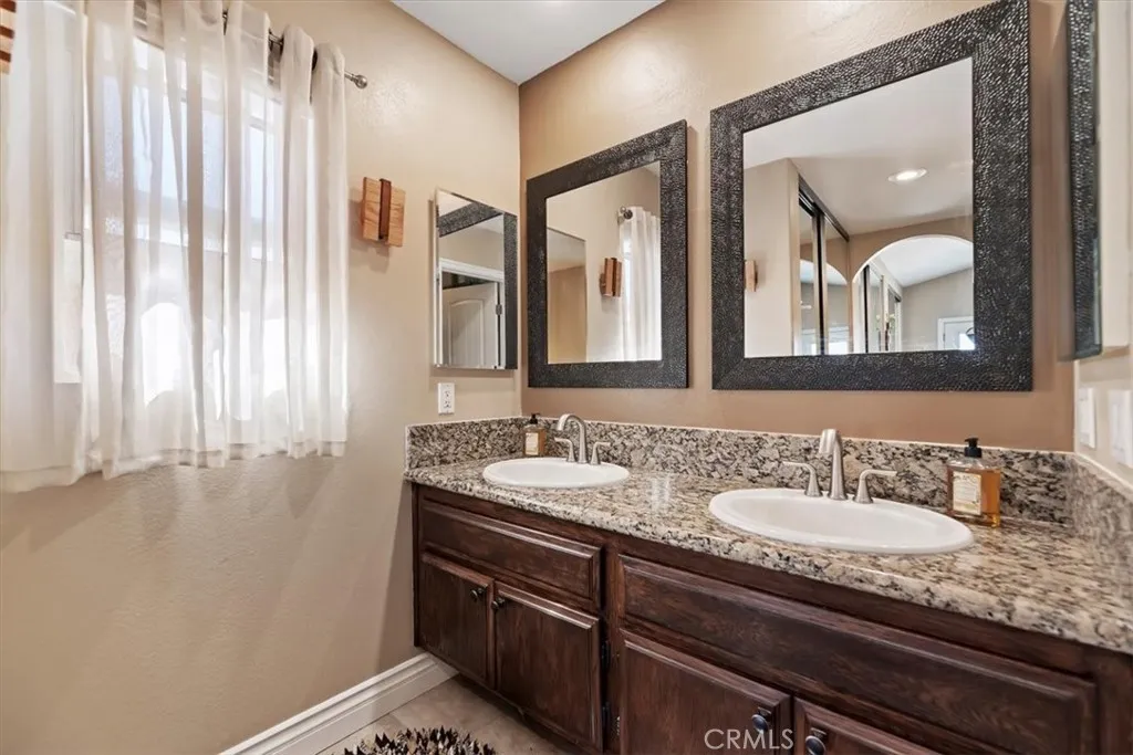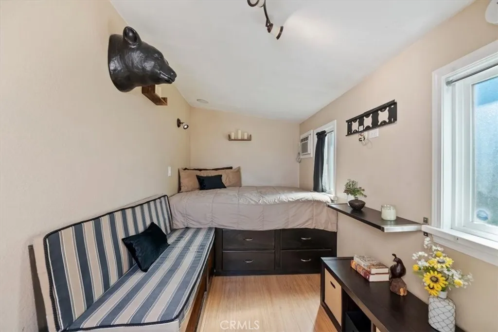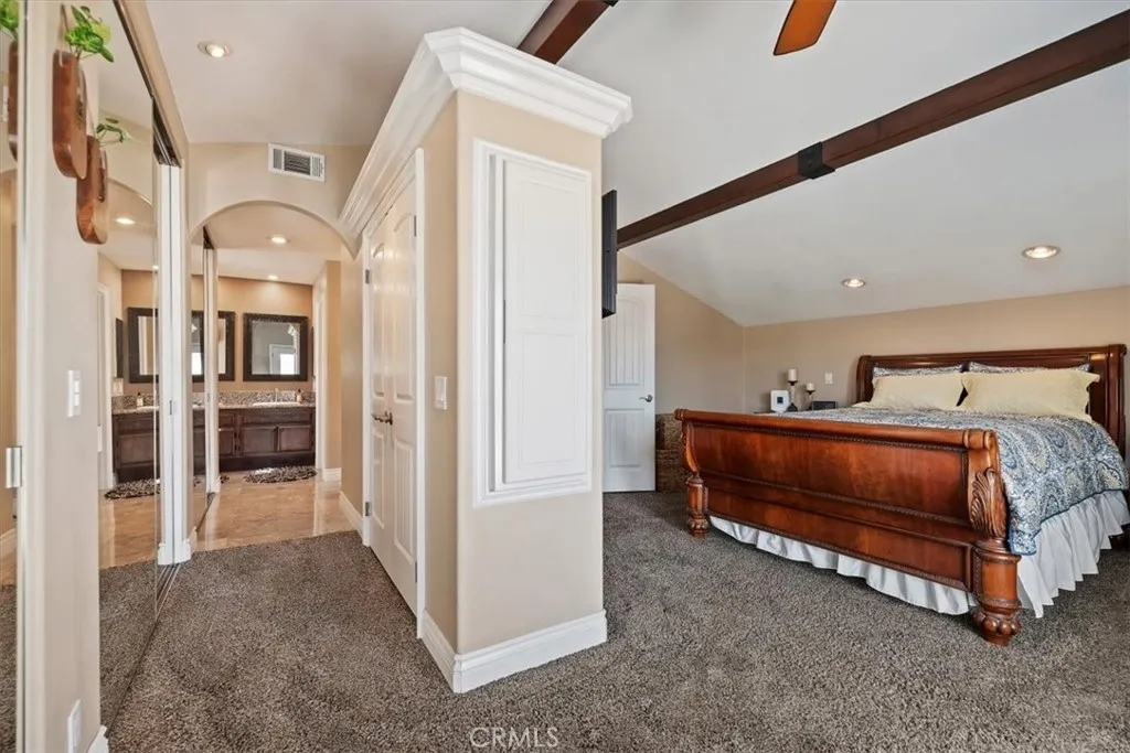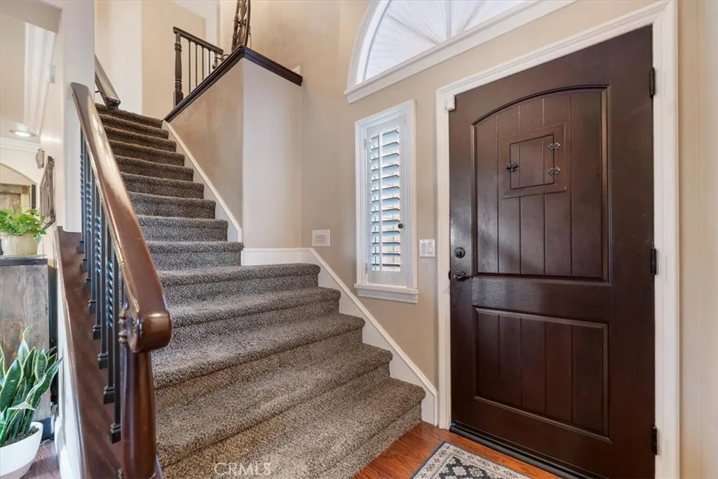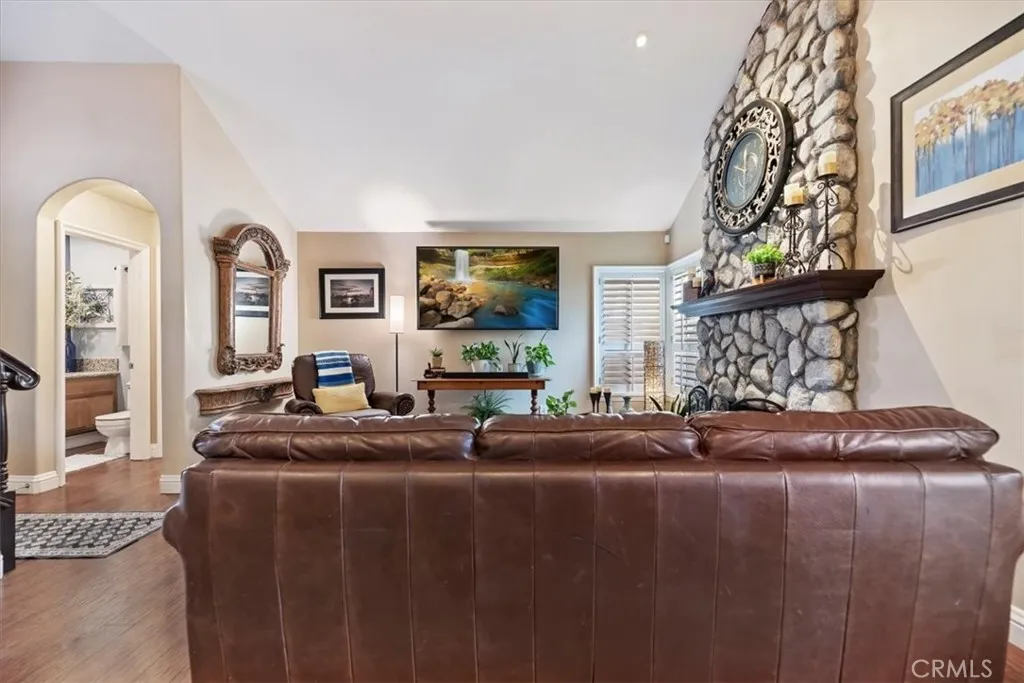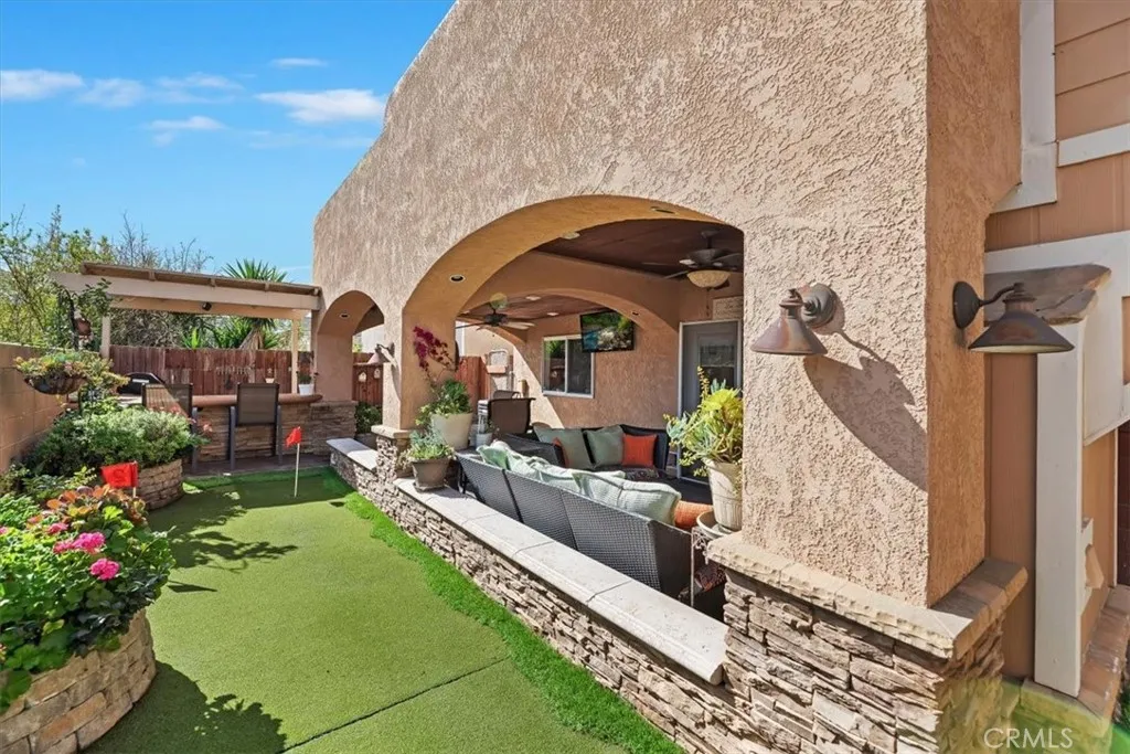 Rancho Cucamonga Beauty Upgrades Galore with evident pride of ownership in every detail. Nestled in the foothills of Rancho Cucamonga, this beautiful residence offers the perfect blend of comfort, style, and versatility. Ideally located in a sought-after community. Upon entering you will find life-proof laminate wood flooring and raised 6-inch baseboards throughout. The warm inviting grand living room is centered around a stunning stone fireplace. Beautiful architecture with lighted niches to display your beautiful art, sculptures or anything you would like to showcase. Gorgeous formal dining room with crown molding, recessed lighting, and French doors leading to the backyard. The gourmet upgraded kitchen is designed for both everyday living and entertaining, featuring modern finishes boasting granite countertops, stainless steel appliances, a large stainless farm sink, extra storage behind exquisite, reclaimed barn doors, and a walk-in pantry. This four-bedroom property features three spacious bedrooms in the main home. One of these bedrooms offers a built-in Murphy bed that allows for extra space when the bed is tucked away and includes a desk. The separate private room dwelling could be used as a 4th bedroom that includes heating and air perfect for guests, multigenerational living, a home office, or rental potential. The primary suite will leave you speechless with meticulous upgrades, including recessed lighting, a built-in ironing board, French doors leading to a large balcony, loads of storage for linens and 3 closets with mirrored sliding doors. The upgraded luxur