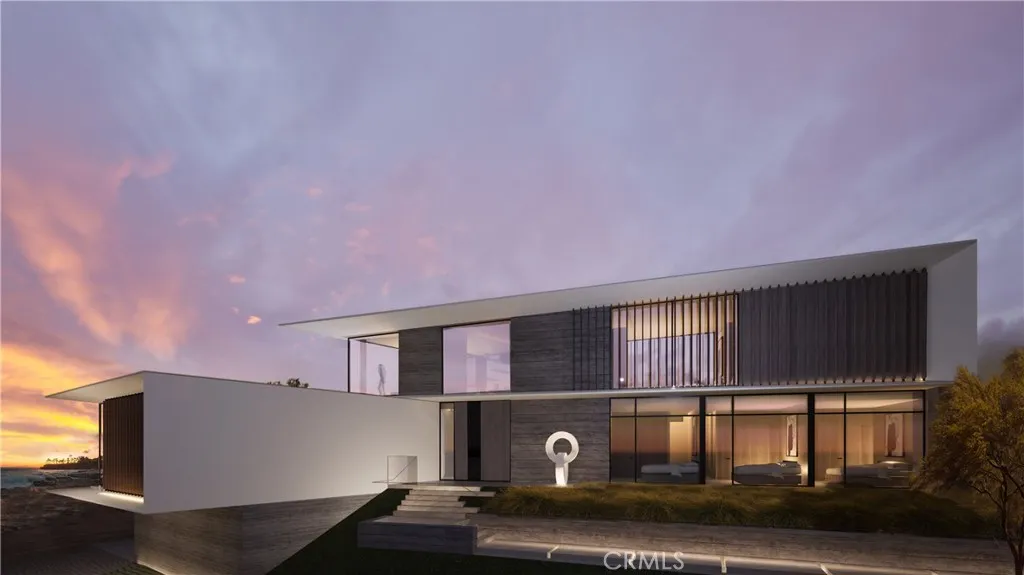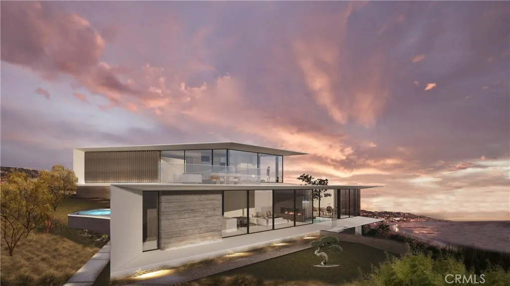 Introducing the largest permit-ready homesite currently available in coveted Bluebird Canyon, Laguna Beach. This exceptional coastal property is a legally established SB9-approved lot split, providing added certainty and protection regarding land use and subdivision rights. The offering includes a Design Review Boardapproved set of architectural plans for a striking modern single-family residence, designed by Horst Architects, a renowned local firm known for thoughtful, site-responsive coastal design. The approved plans include approximately 4,393 square feet of living space, a 525-square-foot garage, and an elevated ocean-view deck. The expansive 12,363-square-foot lot captures panoramic views of the Pacific Ocean and Catalina Island from a quiet ridgeline setting between upper Bluebird Canyon and Morningside Drive. This offering is not raw land. It includes the permit-ready building plans and associated process management for a 4-bedroom, 4-1/2 bath residence with an office, expansive indoor-outdoor living areas, an integrated water feature, an in-ground spa, and a carefully considered arrival and circulation experience. The homes design received the 2025 AIA National New Residential Design Award, underscoring the project's architectural quality and design integrity. Fully approved plans materially reduce time and project risk, allowing a buyer to move directly to permitting and construction rather than navigating years of hearings and redesigns. Final building department clearance is anticipated in Summer 2026. Architectural plans also include an optional accessory dwell