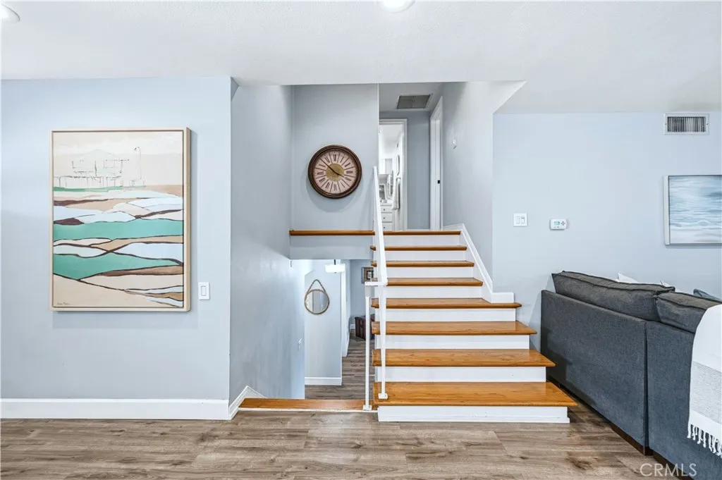 Welcome to one of Long Beach's most sought-after neighborhoods El Dorado Park Estates. This beautifully remodeled 201 Model tri-level home, the most popular floor plan built by S&S, offers an exceptional blend of space, style, and versatility across 2,242 square feet of thoughtfully designed living space. The main level greets you with a stunning, fully remodeled kitchen that flows seamlessly into the living and dining areas an entertainer's dream featuring an oversized island, gleaming stainless steel appliances and elegant quartz countertops. A formal living room and dining room complete the main level, along with a newly installed sliding glass door that opens to the backyard, effortlessly connecting indoor and outdoor living. The upper level is home to two generous guest bedrooms, a full hall bath with tub/shower combination, and convenient linen storage. Also upstairs, the serene primary suite offers double mirrored sliding closet doors, rich hardwood floors, and a dedicated vanity area. The private bath has been tastefully updated with floor-to-ceiling tile, a walk-in shower with glass doors, and refined finishes throughout. The lower level provides incredible flexibility ideal for multi-generational living or extended guest accommodations featuring a full bathroom, a spacious bedroom, a comfortable family room, and an oversized laundry room. Throughout the home you'll find beautiful hardwood floors upstairs and luxury vinyl plank flooring downstairs, smooth ceilings, recessed lighting, central heating and air conditioning, and full copper plumbing offering both