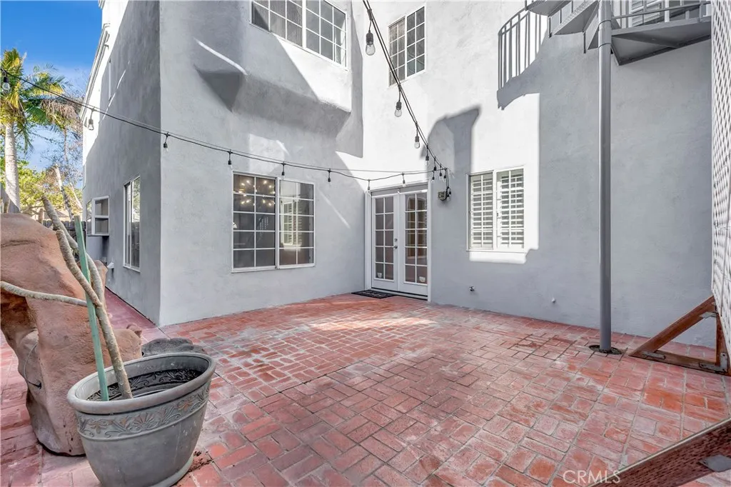 Located on a quiet street in downtown Huntington Beach, this beautifully maintained 3 bedroom, 3 bathroom home offers just over 2,400 square feet of thoughtfully designed living space and exceptional coastal walkability. Mature lush landscaping, a grass front yard, white wood fencing, brick walkway, and fresh exterior paint create standout curb appeal. Inside, welcomes you to a freshly painted interior with refinished hardwood floors, new carpet throughout, and white wood shutters on every window. The main level features a spacious living room with a gas log marble fireplace, a large formal dining room, and a remodeled white kitchen with new countertops, refinished cabinets and center island with seating. The kitchen opens to the family room for seamless entertaining. French doors lead to a private brick patio courtyard with gas BBQ hookup. A full bathroom and oversized laundry room with gas and 240 volt hookups complete the first floor. Upstairs, the large primary suite offers a bay style window, walk-in closet, and oversized en suite bath with dual sinks and whirlpool tub with shower. Generously sized secondary bedrooms each include walk in closets, along with dual hallway linen closets and extensive storage throughout. The expansive bonus room features a second dual gas log marble fireplace, wet bar, and French doors opening to a balcony. This space can easily be converted into a fourth bedroom. A spiral staircase with marine finish leads to the approximately 400 square foot third story rooftop deck with water and BBQ gas hookups, offering beautiful views of the 4th of J