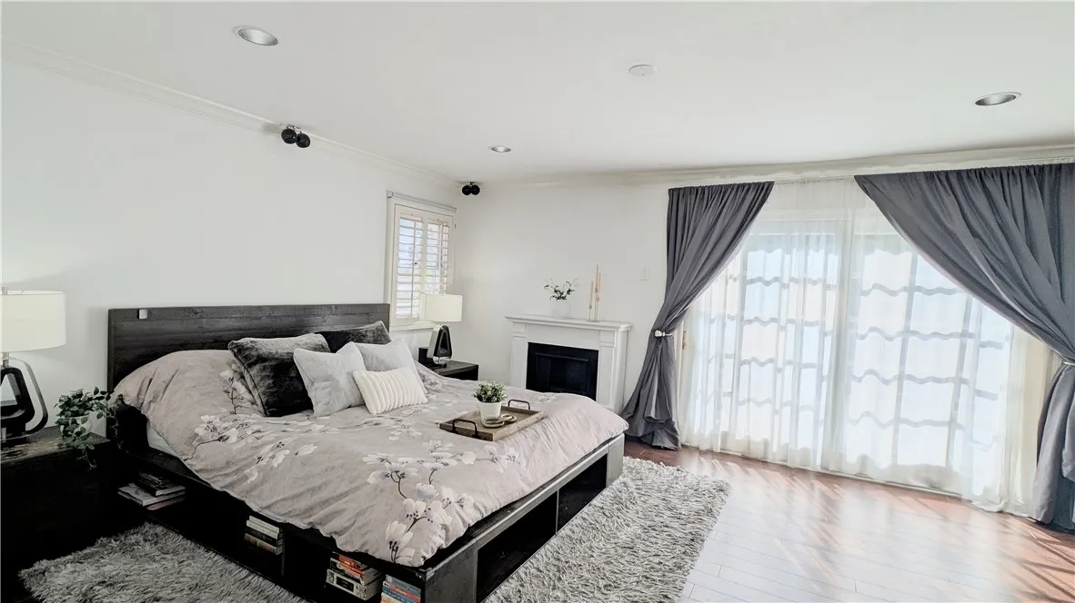 Tucked away on a quiet cul-de-sac south of Ventura Boulevard in the highly desirable Vista De Oro neighborhood of Woodland Hills, this move-in ready split-level home offers privacy, comfort, and resort-style indoor-outdoor living with pool, spa, fully paid solar, and no HOA. Surrounded by architecturally distinct homes and scenic hillside surroundings, the property features a light-filled open floor plan with soaring ceilings, wood and tile flooring, recessed lighting, and over $90,000 in upgrades. A welcoming entry opens to a vaulted living room with gas fireplace, expansive windows, and elegant light fixtures that fill the space with natural light. The kitchen features granite countertops, stainless steel appliances, a newer dishwasher, and travertine flooring. Sliding glass doors open directly to the backyard retreat, creating a seamless connection between indoor and outdoor living while providing a functional and stylish space for everyday living and entertaining. An oversized family room provides an additional gathering space with fireplace, recessed lighting, and French doors. Upstairs, the spacious primary suite offers a dual walk-in closets, a tiled shower, jetted soaking tub, dual vanities. French doors open to a private balcony overlooking the hillside, pool, and beautifully landscaped yard, adding to the sense of charm and tranquility. The backyard is designed for relaxation and entertaining, featuring a covered patio, multiple seating areas, built-in gas and charcoal barbecue, and a saltwater pool and spa with waterfall feature surrounded by mature landscaping.