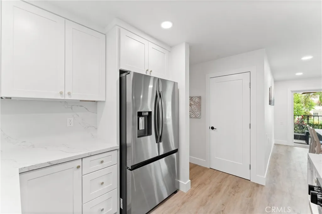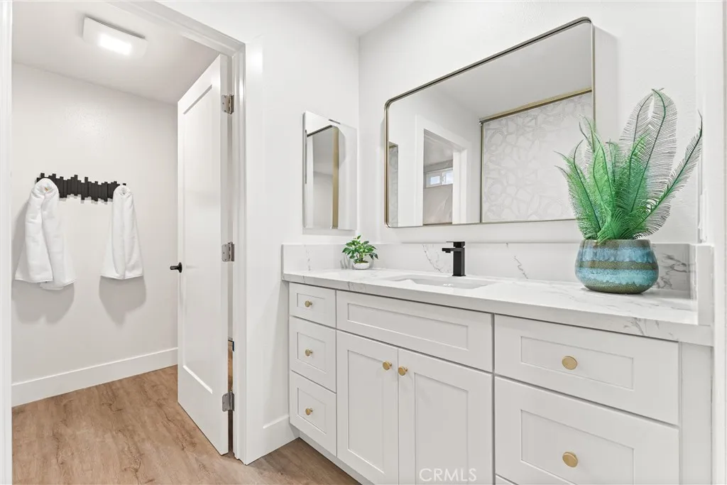 Experience luxury and comfort in this fully remodeled 2BD/2BA, 1,199 sq ft Garden Villa condo in the heart of Laguna Woods Village! Located in a Tri-level building with elevator access and subterranean parking, this single-level unit features a modern split-bedroom layout, each with its own new mini-split HVAC system. The designer kitchen impresses with quartz countertops, waterfall island, full quartz backsplash, custom soft-close shaker cabinets, under-cabinet and recessed lighting, and bespoke Samsung stainless appliances. Enjoy tranquil mountain and magnolia tree views from the private balcony or through brand-new Milgard windows and doors. Bathrooms include a spa-like walk-in shower and a luxurious Jacuzzi soaking tubplus upgraded vanities and Toto toilets. Additional highlights: luxury vinyl plank flooring throughout, smooth ceilings, new Bradford White water heater, and fully permitted upgrades. Steps from Clubhouse 4 with world-class amenities. Resort-style 55+ living!