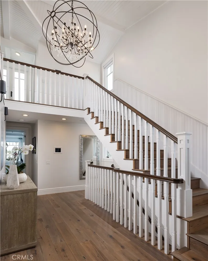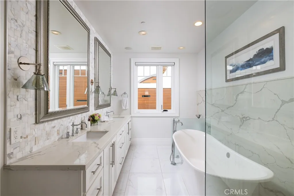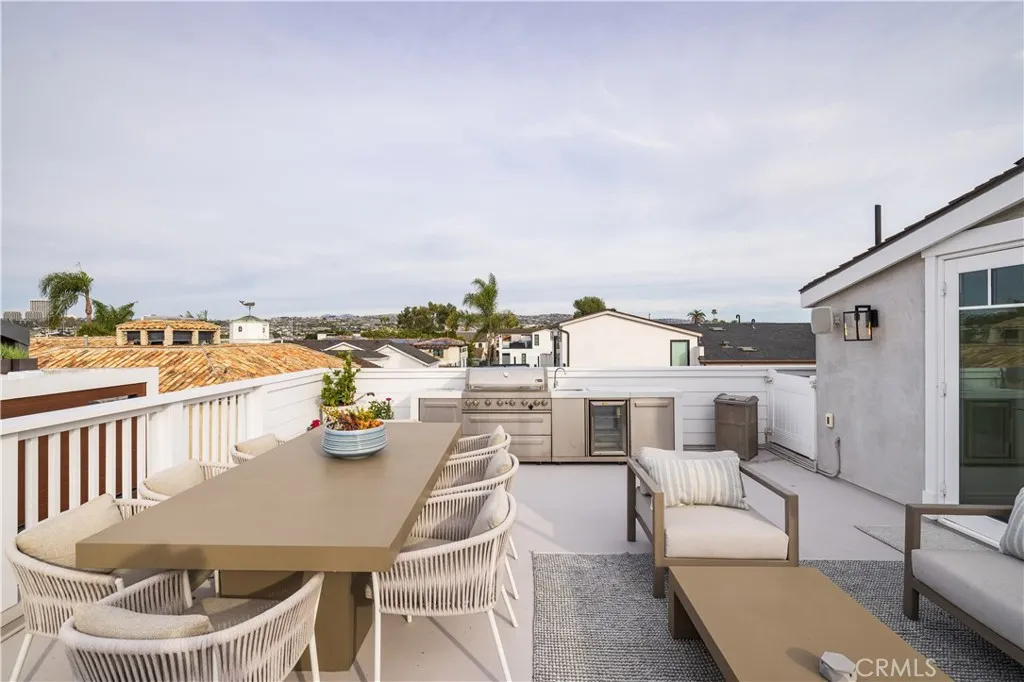 Known as the Nautical Haus, this chic seaside residence embodies refined coastal living in Newport Beachs coveted Peninsula Point. Thoughtfully designed across three levels, the home blends timeless elegance with modern sophistication, offering light-filled interiors, tasteful finishes, and a seamless indoor-outdoor lifestyle. The main level showcases an open-concept floor plan ideal for entertaining, where the living and dining areas flow effortlessly into a gourmet kitchen anchored by a striking Calacatta marble island. Custom cabinetry, premium appliances, and designer lighting create a polished yet welcoming atmosphere. An enclosed front patio extends the living space, capturing ocean breezes and the relaxed energy of the Peninsula. Upstairs, a stunning primary suite offers tranquil bay views and a spa-inspired bath with dual vanities, a soaking tub, and a walk-in shower. Beautifully appointed guest suites provide comfort and privacy, making the home equally suited for everyday living or a luxurious beach retreat. Indoor-outdoor enjoyment continues with an oversized second-level deck and a third-floor viewing deck where you can take in harbor activity and passing yachts. Additional highlights include an elevator servicing all levels, elegant statement chandeliers, and a Control4 smart home automation system for effortless living. A two-car garage completes this move-in ready coastal home. Ideally positioned just moments from The Wedge, Newport Harbor, Balboa Beach, the ferry, and the Fun Zone, Peninsula Point offers a quieter, less-traveled setting at the tip of the Bal