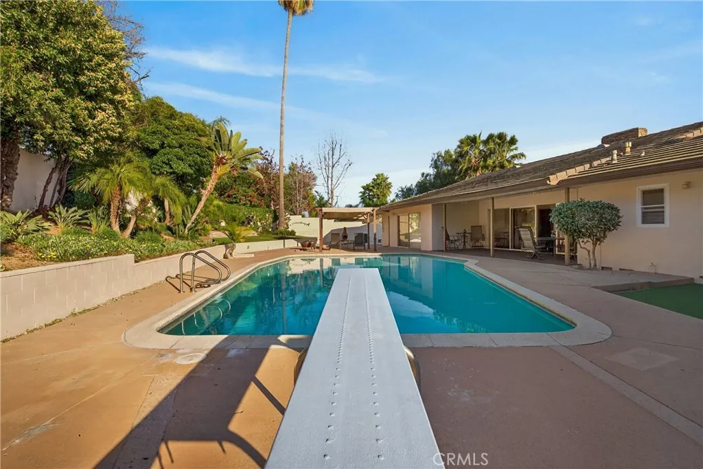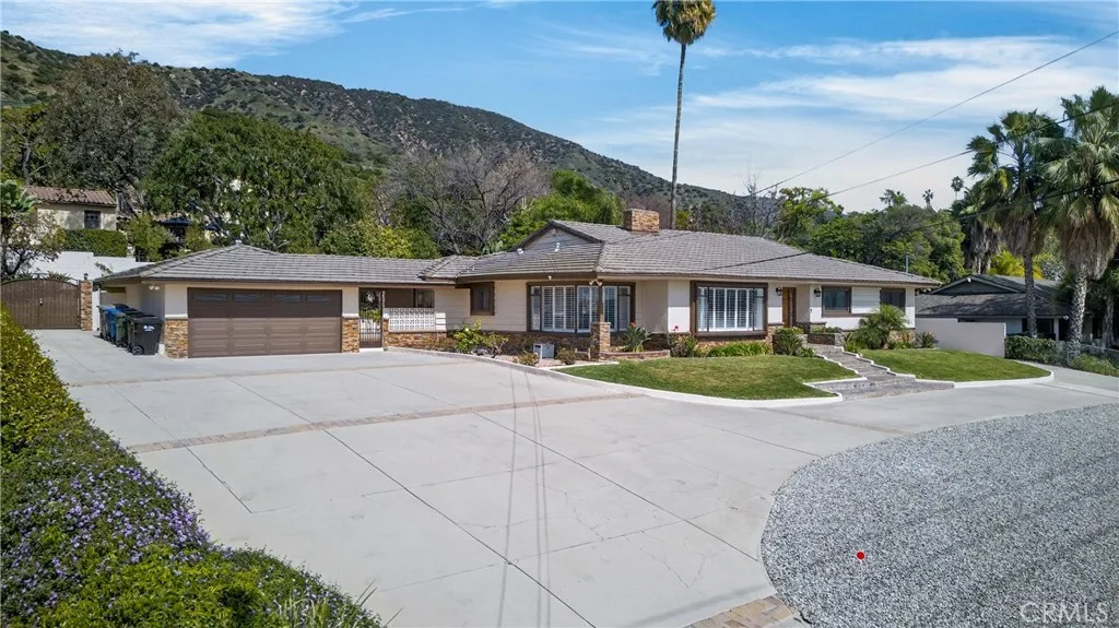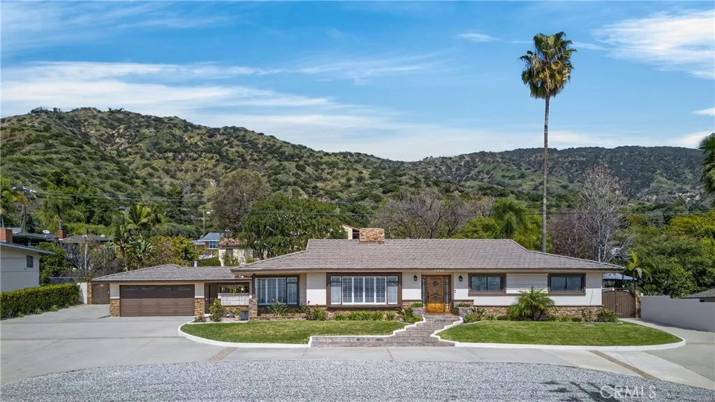 Location and presence. Set against the Glendora foothills, this home offers unobstructed views, an elevated lot for added privacy, and strong curb appeal with its symmetrical ranch faade, stone accents, and solid wood entry. The wide driveway and attached garage provide ample parking while reinforcing an estate-style feel. Large front windows brighten the main living spaces with natural lights and the generous lot size offers usable space both inside and outside. This home consists of a spacious master bedroom with direect access to your backyard oasis, two other bedrooms for family and/or guests, two living areas, as well as tons of storage spaces. The backyard centers around a large private pool with a diving board, creating a true outdoor living space that fits the foothill lifestyle buyers like you are looking for. An expansive patio surrounds the pool with plenty of room for lounging and entertaining, while the covered patio attached to the home provides shaded seating and easy indoor-outdoor flow through sliding doors. A separate pergola lounge area adds another gathering space, and mature landscaping with palms and terraced greenery creates privacy and a resort-like atmosphere making this backyard both functional and inviting for year-round Southern California living.