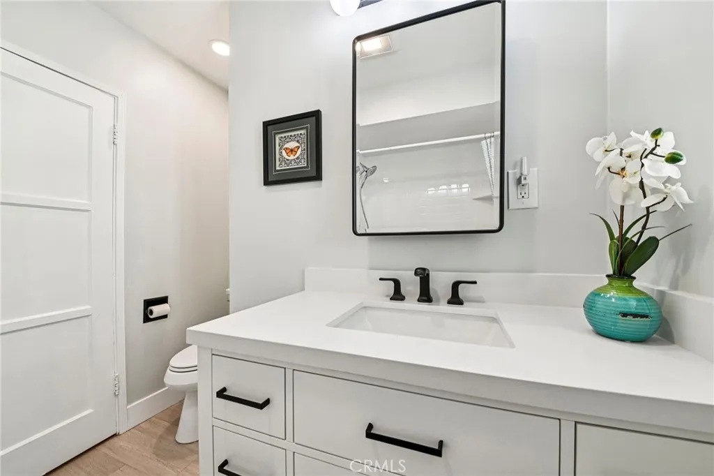 Harmonizing classic Pasadena charm with 2026 modernization, this meticulously transformed residence offers the ultimate "peace of mind" lifestyle. Every inch of this home has been reimagined with designer-curated finishes and cutting-edge technology. The interior is defined by Luxury Vinyl Plank flooring, custom Levolor blinds, and a cohesive palette accented by matte black hardware and designer lighting. A stunning chefs kitchen featuring custom Thomasville cabinetry, Quartz countertops, and a premium suite of LG Smart appliancesincluding an InstaView gas range with air fry convection. Both bathrooms serve as private retreats, boasting furniture-grade vanities, deep soaking tub, and custom glass enclosures, all integrated with smart, energy-efficient sensors. A distinctive step-down family room offers seamless access to the attached two-car garage and private patio, and is enhanced by a generously sized bedroom, an elegant full bath, and a dedicated office suitecreating an ideal private retreat for guests, multigenerational living, or a sophisticated work-from-home environment. Beyond the aesthetic, the homes infrastructure has been upgraded to the highest standards. Features include a new 4-ton Lennox Dual Fuel HVAC system with all new duck-work, a GAF Timberline HDZ "Cool Roof" with a lifetime warranty, all new gutters, new custom sized exterior doors, and Simonton Low-E windows. Practical luxury continues with an interior LG Wash Tower, an epoxy-floored oversized garage with a smart opener, and a brand-new concrete patio. The spacious backyard features mature fruit tree