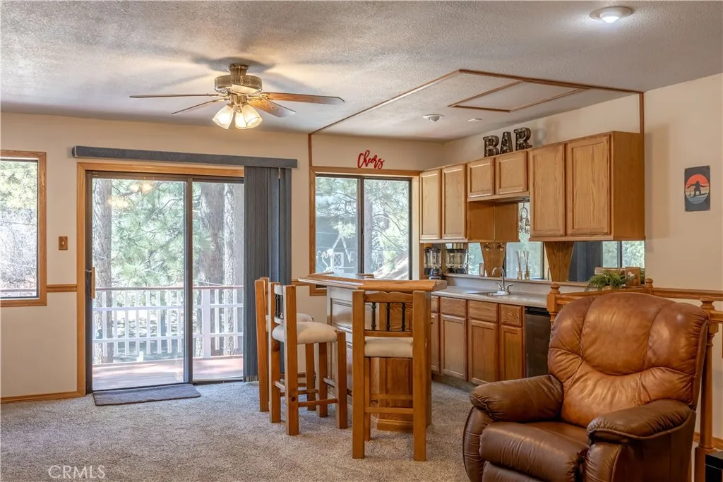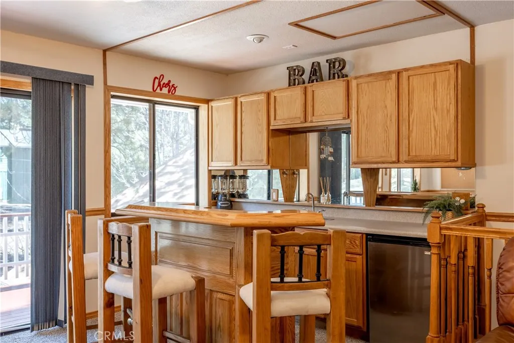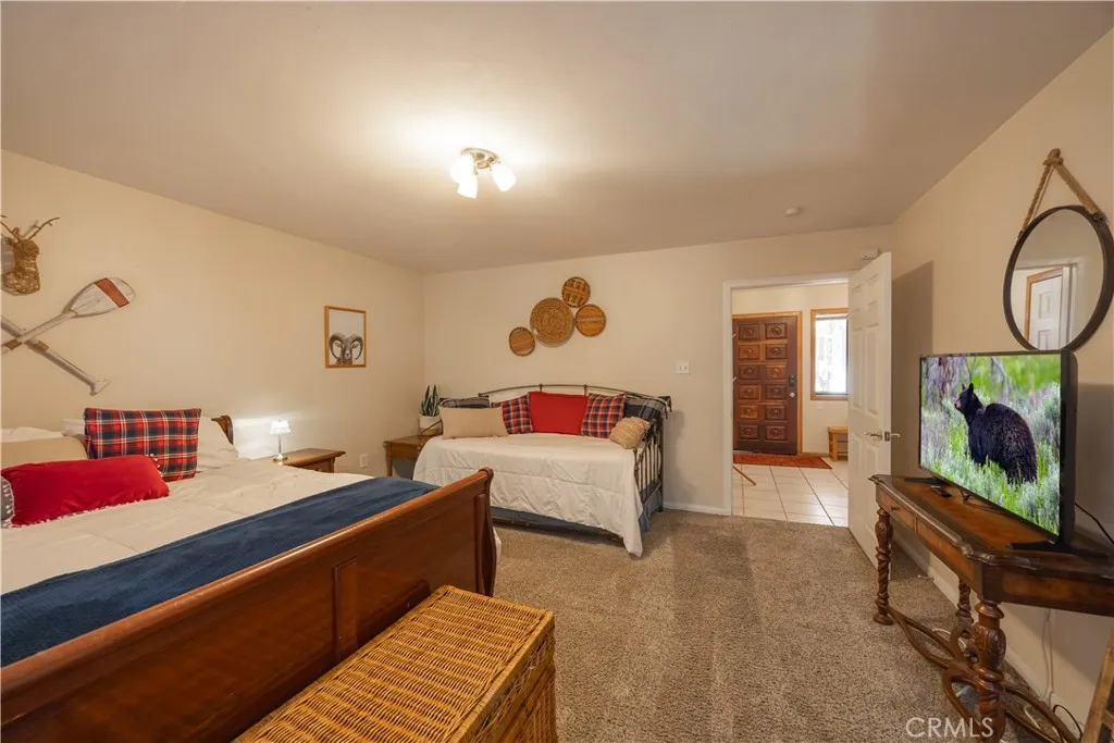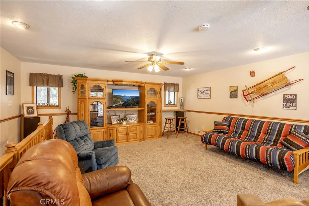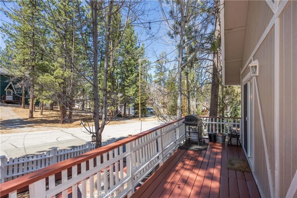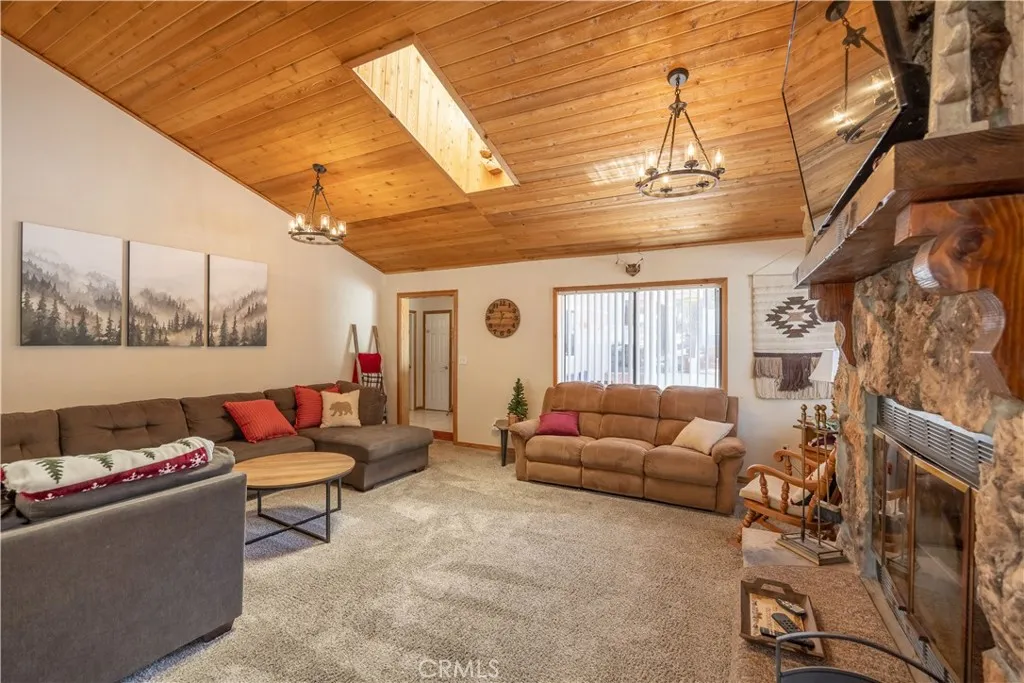 Experience the best of Big Bear living in this well-maintained Fox Farm home, tucked away on a quiet, peaceful street far from traffic. Built with a comfortable open-concept layout, the interior centers around a sun-drenched "Great Room" with high wood-beam ceilings, natural skylights, and a solid floor-to-ceiling stone fireplace. This space flows right into the kitchenfitted with a stainless-steel range and handy pull-out pantry storageand a dining area where glass sliders open to a large cedar deck. It is a great spot for a summer BBQ or a soak in the outdoor hot tub, which has been recently updated with a brand-new heater and digital controller. The homes three bedrooms include a roomy primary suite and a guest bath with both a soaking tub and a separate shower. A standout feature is the upper-level entertainment area: a massive, dedicated game room with a built-in wet bar, built specifically for hanging out with friends and guests after a day on the mountain. Beyond the living space, the home offers practical features that make mountain living easier, like a newly installed high-efficiency gas furnace, a two-car garage, and a dedicated workshop for tools and projects. The flat, oversized lot also provides plenty of room to park a boat or an RV. Located just minutes from both ski resorts and the main grocery stores in town, this property is a solid, turnkey choice for a full-time home, a weekend getaway, or a seasonal rental.