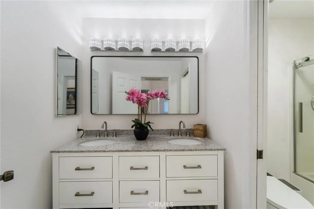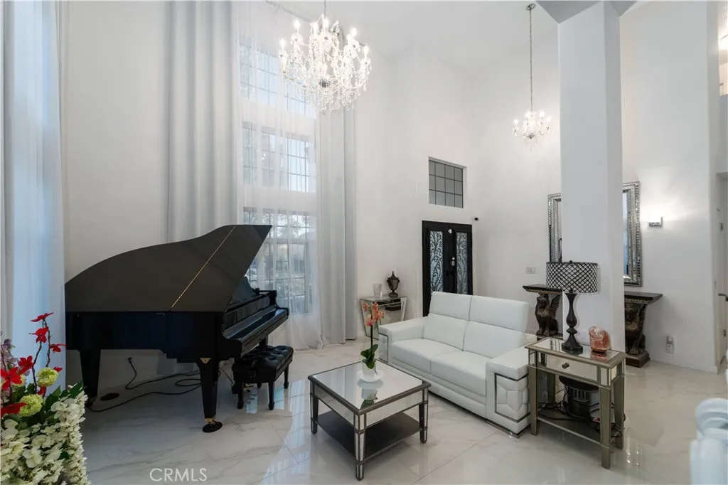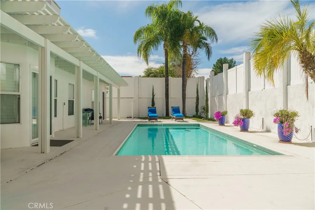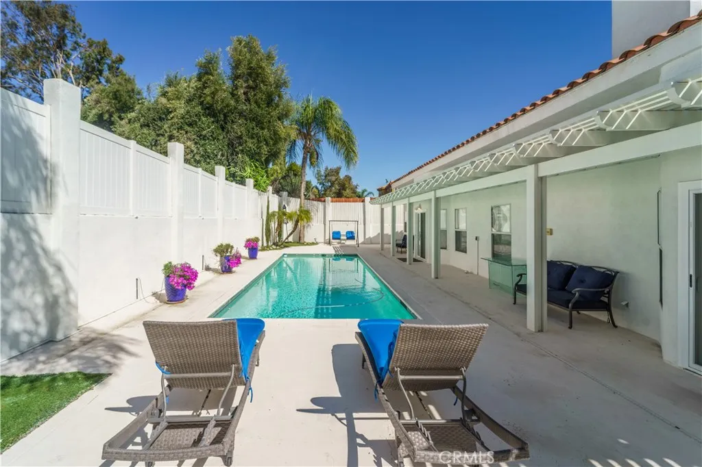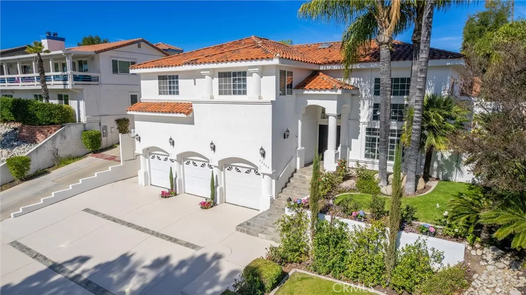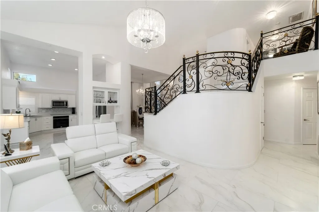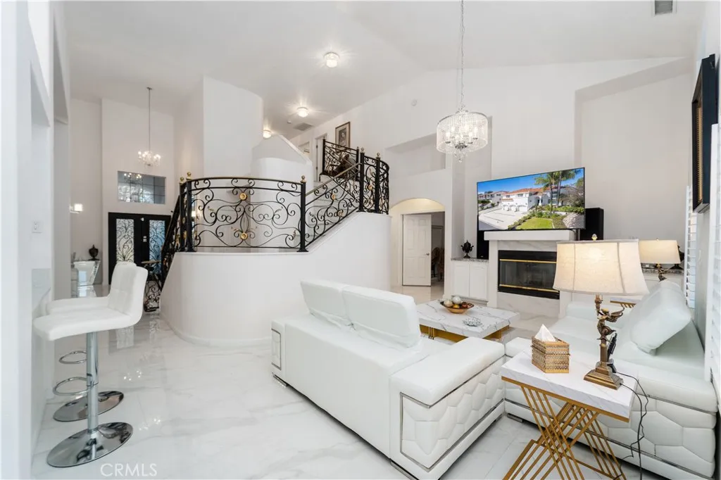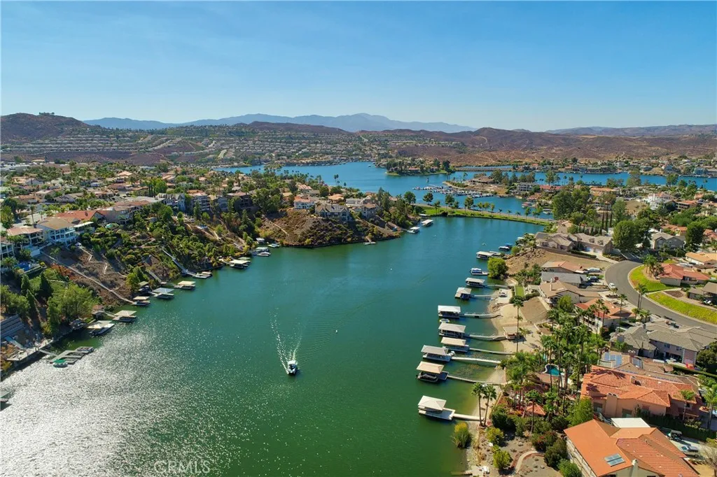 Welcome to this beautifully remodeled contemporary home located at the heart of the guard-gated community of Canyon Lake. With controlled access through staffed entry gates, this private community offers a distinctive residential setting centered around one of Southern Californias most unique lake lifestyles. This elegant white residence features soaring ceilings and an open floor plan that creates a bright, airy atmosphere from the moment you enter. A custom black-and-gold iron-and-glass front door makes a striking first impression, opening to a thoughtfully designed interior featuring a custom black-and-gold iron staircase railing, porcelain tile flooring, and elegant chandeliers add an inviting glow throughout the home. Two fireplaces add warmth and character to the modern design, while high ceilings throughout enhance the sense of space in every room. The expansive main-floor primary suite offers a relaxing retreat with a spa-inspired bathroom and an oversized walk-in shower. Upstairs youll find two additional bedrooms and a full bathroom, along with a spacious bonus/game room complete with a wet bar and convenient half bathan ideal space for entertaining or relaxing. Large windows fill the upper level with natural light, and the bonus room captures partial views of Canyon Lake, a welcome reminder of the homes setting within this vibrant lake community. Elegant curtains frame the open living spaces, while the bright all-white interior creates a timeless look that feels both refined and contemporary. Step outside to your private backyard oasis featuring a beautiful pool,