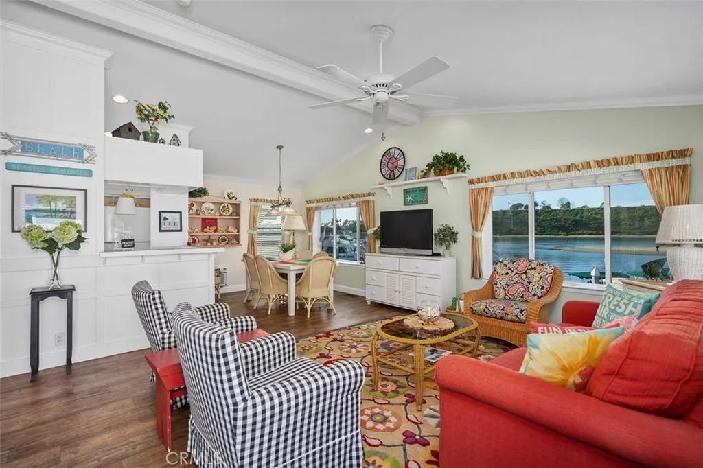 This charming three-bedroom, two-bath waterfront home in the heart of Bayside Village offers the ultimate Back Bay lifestyle in Newport Beach. At approximately 1,152 square feet, this cozy, light-filled home features vaulted ceilings, crown molding, beautiful baseboards, and large windows that frame unobstructed water views stretching toward the coveted Dover Shores neighborhood. Natural light floods every room, with solar tubes brightening hallways and ceiling fans in all bedrooms, keeping the coastal breeze flowing. The spacious kitchen has generous cupboard and pantry space, ideal for everyday living or hosting guests after a sunset cruise. An inside laundry room and two full bathrooms provide practical convenience, while storage sheds and covered parking make beachside life effortless. Venture outside to your private patio, ideal for morning coffee or evening wine, and enjoy five lush, landscaped planters on timer irrigation. Boating enthusiasts will love the assumable boat dock directly in front of the home, complete with an 18-foot Duffy boat. Residents also enjoy access to a 220-slip marina, with resort-style views near Newport Dunes Waterfront Resort, all while maintaining a peaceful, intimate feel. Bayside Village is a vibrant, all-ages community with two heated pools, two hot tubs, two clubhouses with fireplaces, kitchens, and even a dance floor, plus a fitness center, billiard room, fenced dog park, and multiple designated pet areas. Its just a short stroll to Balboa Island and Fashion Island, adding shopping, dining, and fun within easy reach. Fully furnished, w