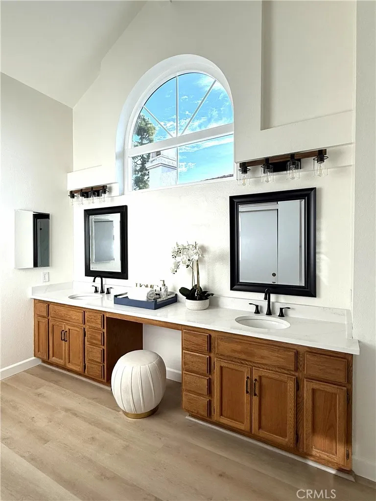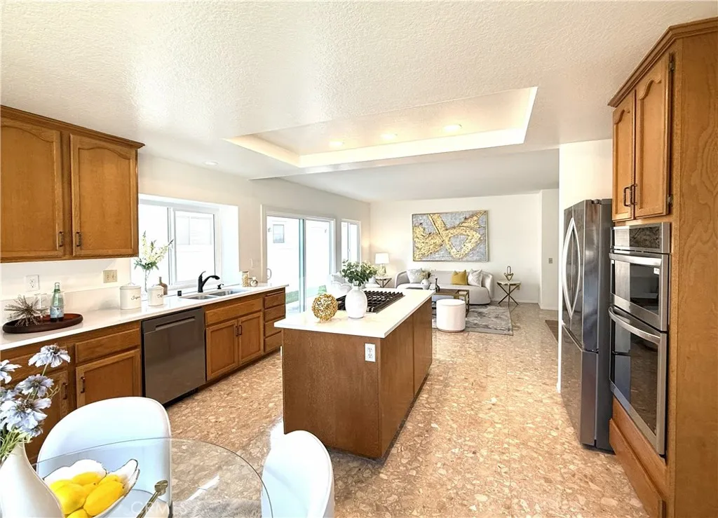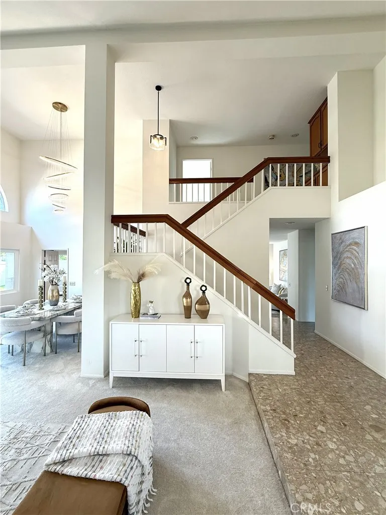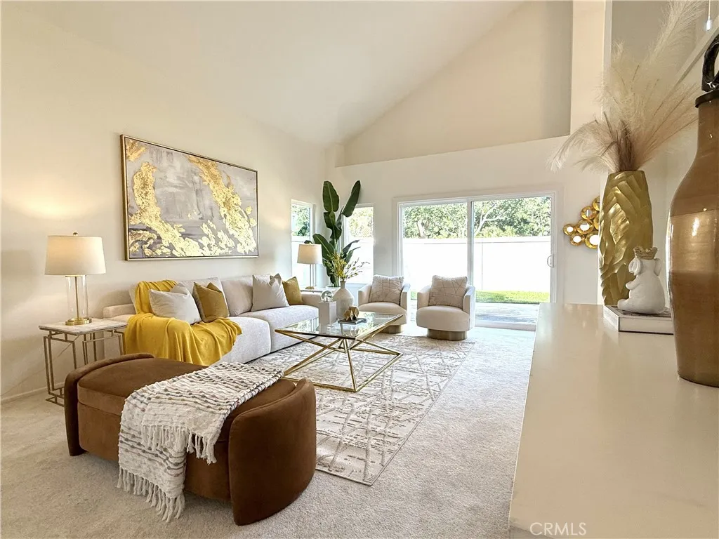 Gorgeous, private, bright and airy, and a completely new remodel. This house is ideally situated in a corner lot, with only one neighbor adjacent. The entry way features cathedral ceilings in the living and dining room, and additional vaulted ceilings in the primary and a secondary bedroom provide extra space and light. Complete with new finishes, from gorgeous quartz counter tops to paint, carpet, and plank vinyl flooring, this home has a new custom master bathroom with a walk in shower and soaking tub, featuring custom tile work and glass shower enclosure. Beautiful walnut cabinetry provide ample storage space. All the completely new, never used, appliances are energy efficient: Kitchen-Aid gas cook top, LG convection oven/air fryer/microwave combo, LG refrigerator and LG dishwasher. Double paned windows and sliding glass doors are also completely new. You and your loved ones can stroll easily to Starbucks for your morning coffee, pastries at Paris Baguette, or a quick grocery and errands run at Hmart, Sprouts, or Target. You will also be close enough to the community pool and spa to enjoy a dip in the pool and a soak in the spa without having to drive. To top it off, this home is within the highly sought Irvine Unified School district. No mello roos and only $54 HOA dues. A rare find with all these combined attributes!