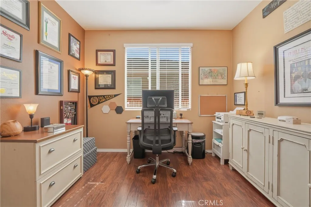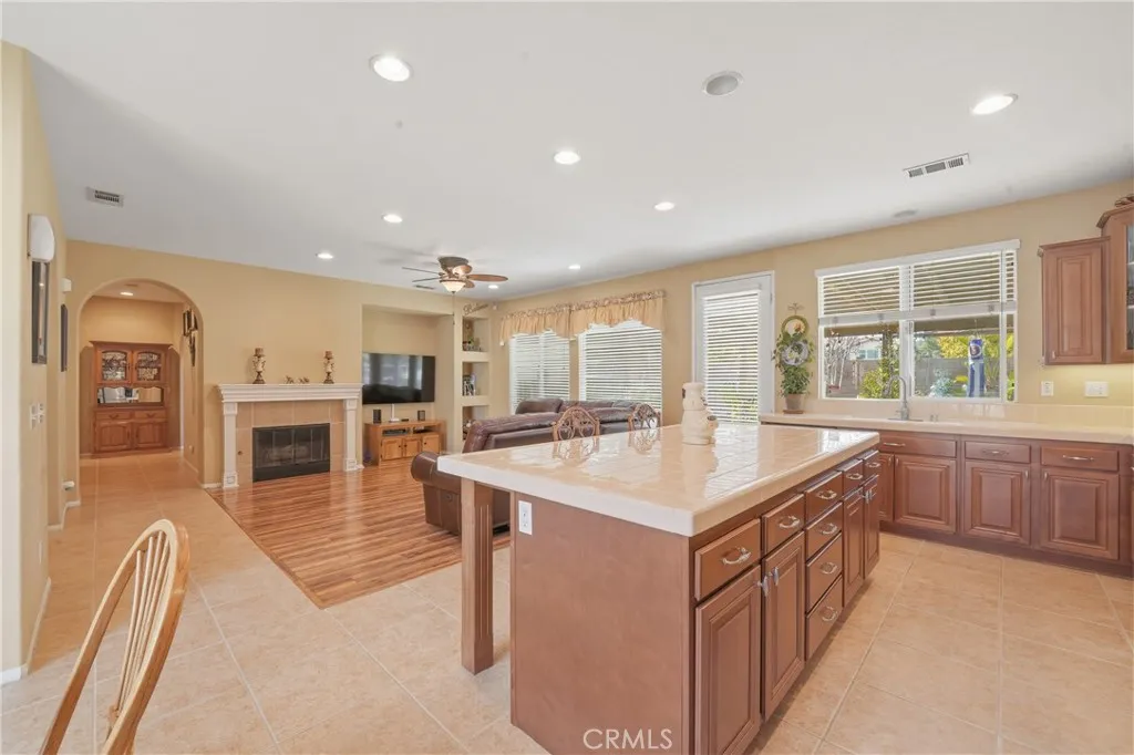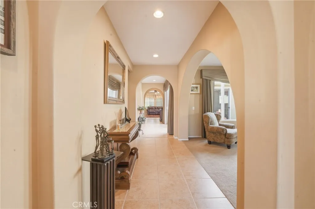 Welcome Home to refined luxury in Parklane an exclusive all single-story within Heritage Lake in Menifee. Tucked away on a quiet cul-de-sac, this breathtaking residence blends elegance, comfort, and effortless sophistication. Meticulously maintained and beautifully upgraded, this immaculate single-story masterpiece is truly move-in ready. Designed with an expansive open-concept layout, the home offers 4 spacious bedrooms, 3.5 designer bathrooms, and a private office. The chef-inspired kitchen is the showpiece featuring a massive statement island, gorgeous countertops, custom cabinet pull-outs, a charming breakfast nook, and elegant flooring that flows seamlessly throughout. Soaring 9-foot ceilings, dramatic interior archways, and a private atrium courtyard create a fresh, modern ambiance with architectural flair. The luxurious primary suite is privately positioned in its own wing, delivering a true retreat experience. Indulge in the spa-like bathroom complete with a deep soaking tub, dual vanities, a glamorous makeup station, a spacious walk-in shower, and an oversized walk-in closet designed to impress. At the heart of the home, the expansive great room exudes warmth and style with its oversized family room and inviting fireplace. Formal living and dining spaces offer flexibility for elegant entertaining, a game room, or a sophisticated lounge all illuminated by an abundance of natural light pouring through large double-pane windows. Step outside to a beautifully landscaped, low-maintenance backyard designed for relaxation and effortless outdoor living. Living in Herita