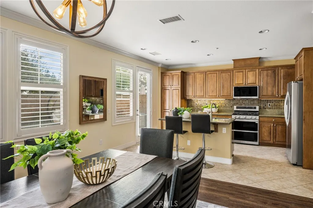 New Price! Welcome home to Villa Palazzo-perfectly located at the end of a quiet cul-de-sac, and walking distance to Yorba Linda High School in the desirable Villagio community. As you enter, youre greeted by an expansive living room that seamlessly flows into the dining area and open-concept kitchencreating an inviting space ideal for both everyday living and entertaining. The kitchen features a generous island with seating and offers direct access to a private, oversized patioperfect for gatherings and simply relaxing outdoors. Natural light fills the home with walls of windows, enhancing the airy open floor plan. Upstairs, the spacious primary suite offers a large walk-in closet and a luxuriously appointed bathroom designed with comfort in mind. Two additional bedrooms complete the second floor, providing flexibility for family, guests, or a home office. Recent upgrades include - custom interior paint, luxury laminate flooring in the living room, new kitchen appliances, faucets, and fixtures, reverse osmosis water system under the kitchen sink, new backsplash and updated powder room faucets, recessed lighting throughout, including a chandelier in the dining area, ceiling fans in all bedrooms, upgraded secondary bathroom with new countertops and faucets. Residents of Villagio enjoy access to community amenities including a pool, spa, and playground. A two-car attached garage provides convenient direct access into the residence, with ample guest parking located nearby. Location is truly unbeatable no one above or below you and only attached on one wall. Centrally located-