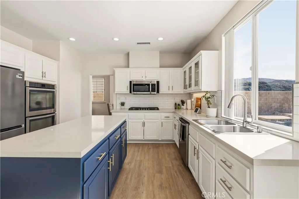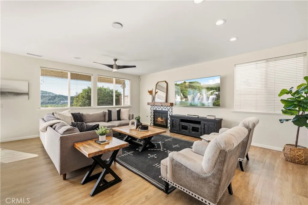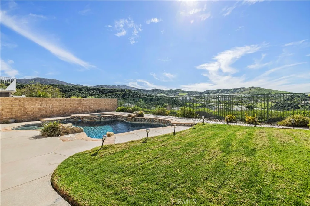 Immaculate Pool & View Home on a Quiet Cul-de-Sac No Mello-Roos! Beautifully maintained 4-bedroom, 3-bath home located on a peaceful flat cul-de-sac street with stunning panoramic views. Enjoy breathtaking scenery from multiple vantage points, including the private balcony off the primary suiteperfect for morning coffee or relaxing sunsets. This home features numerous upgrades including newer flooring and carpet, crown molding, plantation shutters, quartz countertops, and stainless steel appliances. The spacious formal living room offers vaulted ceilings and flows into the formal dining room, complete with a built-in buffet and elegant mirrored wall. The bright kitchen features abundant counter space, a walk-in pantry, breakfast dining area, and opens seamlessly to the inviting family room with a custom fireplaceperfect for everyday living and entertaining. The main floor includes a bedroom and full bathroom, ideal for guests or multi-generational living, along with a laundry room that leads to the attached 3-car garage. Upstairs, the primary suite features a private retreat currently used as an office and a balcony that captures the incredible, sweeping views of the surrounding hills and valley. The primary bedroom also includes a spacious walk-in closet with an additional storage room. Two additional bedrooms and another full bathroom complete the second floor. Step outside to your own backyard oasis featuring a pool and plenty of space to relax or entertain while enjoying the beautiful elevated views. With its ideal layout, upgraded finishes, and desirable location, thi