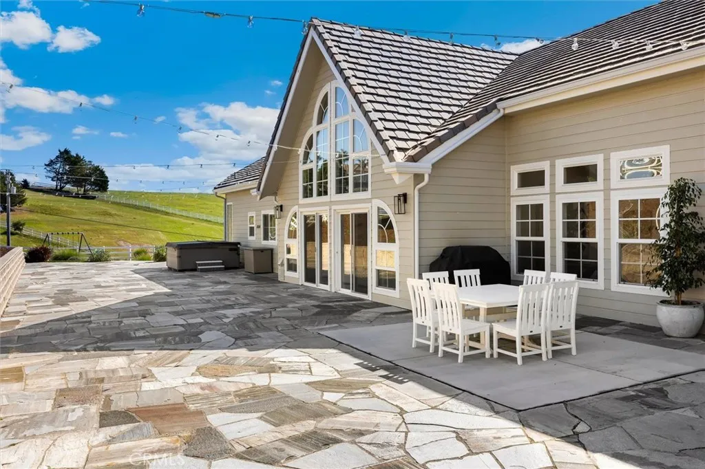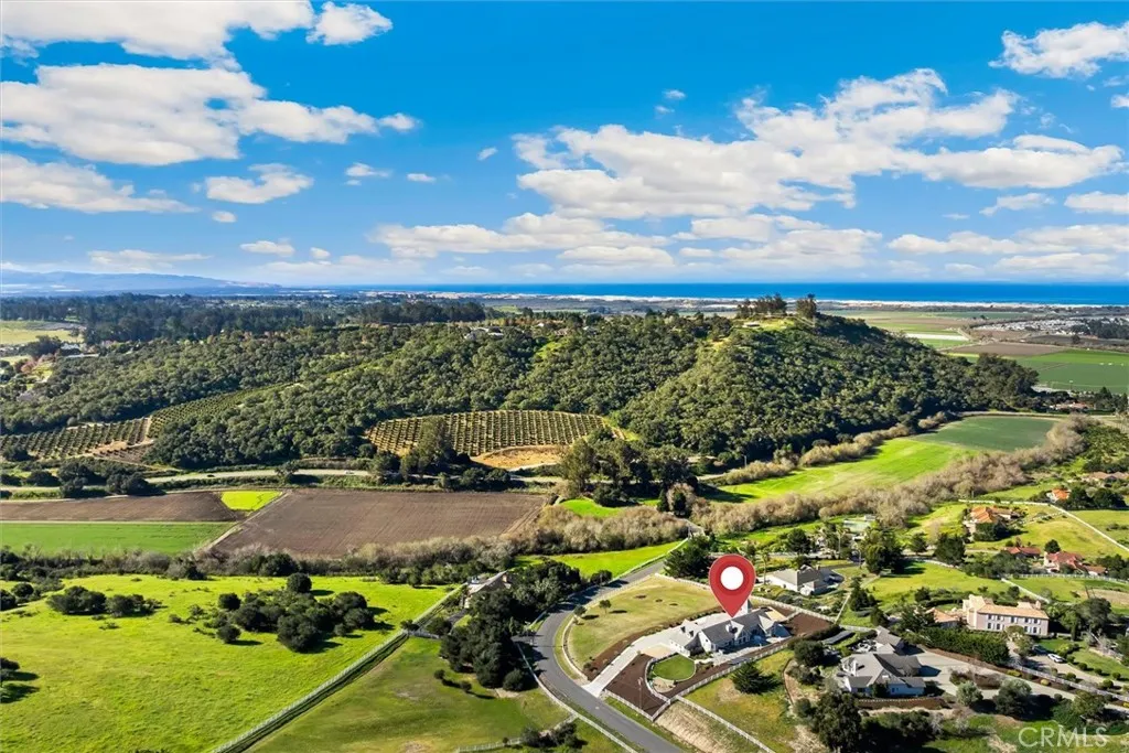 Nestled within the gated community of Falcon Ridge Estates in Arroyo Grande, 172 Falcon Crest Drive is perched atop a recently landscaped 2.65 acre lot and overlooks a lush valley and glimmers of the Pacific Ocean in the distance. The single story 3,769 sqft main residence features 3 spacious bedrooms, 3 bathrooms, and a versatile bonus room that could easily serve as a fourth bedroom, office, or media space. Cathedral ceilings soar throughout the home, complemented by expansive windows that flood the interior with natural light. A wood burning fireplace centers one of the two living rooms, and air conditioning allows for year round comfort. Nearly the entire home was thoughtfully renovated in 2023, including a new roof, wood floors, fully remodeled bathrooms, tankless water heater, new furnace, and most other interior/exterior finishes. One of the homes most captivating features is the expansive 1,700+ sq ft heated wraparound porch. Above the large three-car garage, a private 1,100 sqft guest house (not included in the 3,769 sqft of main residence) provides incredible flexibility and value. Complete with its own kitchen, bathroom, living room, and bedroom, its ideal for family, guests, or potential rental income. Additional highlights include owned solar panels for energy efficiency and sustainability, generous parking, and a fully fenced playground space for littles or pets. This is a rare opportunity to own a unique turnkey property offering space, privacy, and stunning Central Coast viewsall just a few minutes from the charming Village of Arroyo Grande, Pismo Beach, and