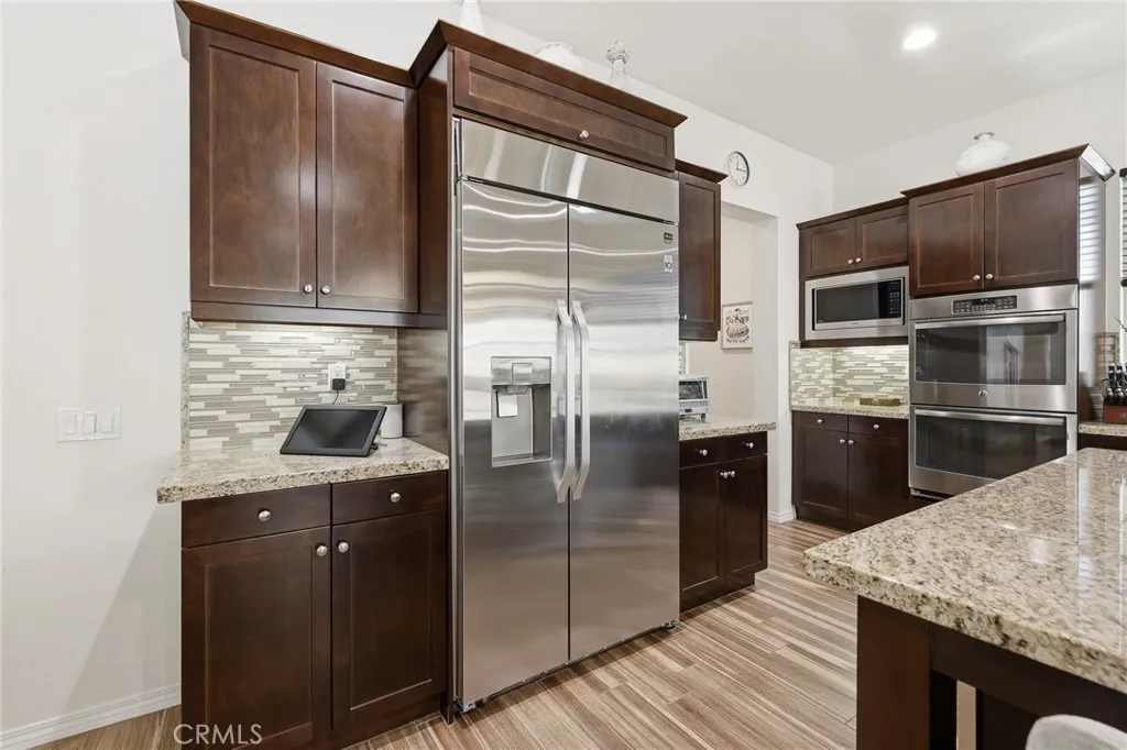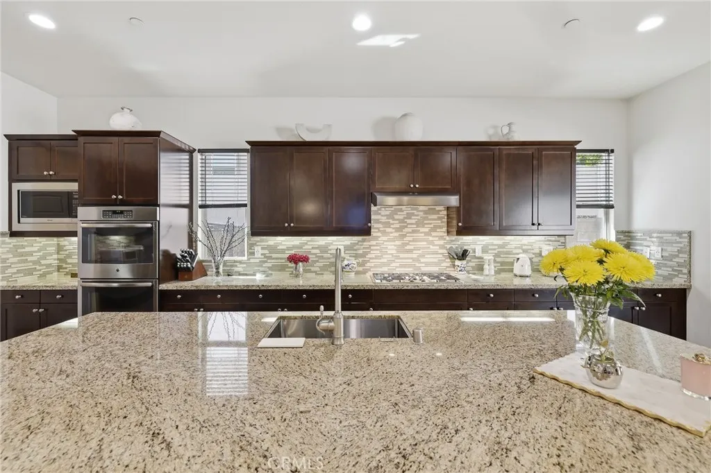 Built in 2014, this single-story home in the Terraces at Agoura Hills offers newer construction, a functional open layout, and a large approximately 0.33-acre lot. With 2,523 square feet, the home includes 4 bedrooms and 3 bathrooms designed for flexibility and everyday living. The kitchen features stainless steel appliances, extensive cabinetry, a walk-in pantry, and a large center island that opens to the main living and dining areas. High ceilings, recessed lighting, and sliding glass doors provide natural light and direct access to the backyard. The primary suite includes a walk-in closet, dual sinks, soaking tub, and separate shower. Three additional bedrooms can be used for guests, office space, or other needs. The backyard is designed for outdoor use and includes a saltwater pool with waterfall, covered patio, built-in barbecue, artificial turf, and multiple usable areas for recreation or entertaining. Additional features include dual-zone HVAC, interior laundry room, attached garage with storage, and EV charging capability. Located in Agoura Hills with access to shopping, dining, outdoor recreation, and major commuting routes.