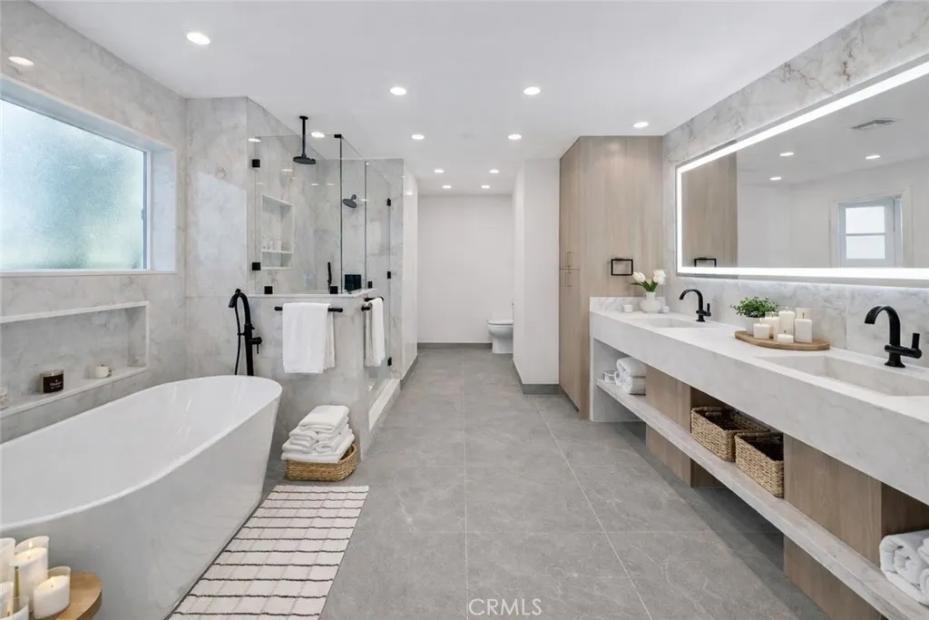 TWO NEW HOMES ON THE LOT !! Newly rebuilt modern compound with ADU, pool and Solar, located at 17165 & 17163 Midwood Drive in desirable Granada Hills, offering approximately 3,400 sq ft of combined living space with 6 bedrooms and 4 bathrooms, designed for luxury living, multi-generational flexibility, and income potential. This DUPLEX was completely reconstructed with permits between 20252026 from foundation to roof, this exceptional property delivers the feel of new construction with brand-new major systems, energy efficiency, and high-end designer finishes throughout. The main residence (approx. 2,600 sq ft with 4 bedrooms and 3 bathrooms) features a highly desirable open floor plan with spacious living and dining areas filled with natural light. A dramatic Calacatta marble fireplace wall creates a striking centerpiece in the living area. The chefs kitchen showcases a large Italian Calacatta marble island, matching marble countertops and backsplash, panel-ready Sub-Zero refrigerator, high-end appliances, custom cabinetry, and a walk-in pantry, making it ideal for both everyday living and entertaining. The primary suite retreat offers a sitting or office area, spacious walk-in closet, and a spa-inspired bathroom featuring a soaking tub and oversized walk-in shower finished in luxury porcelain. A dedicated laundry room with marble finishes, utility sink, smart LG washer and dryer, folding area, and storage cabinetry adds everyday convenience. The newly constructed ADU / Guest house (approx. 800 sq ft with 2 bedrooms and 1 bathroom) includes its own open living area, kitche