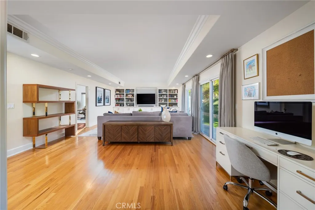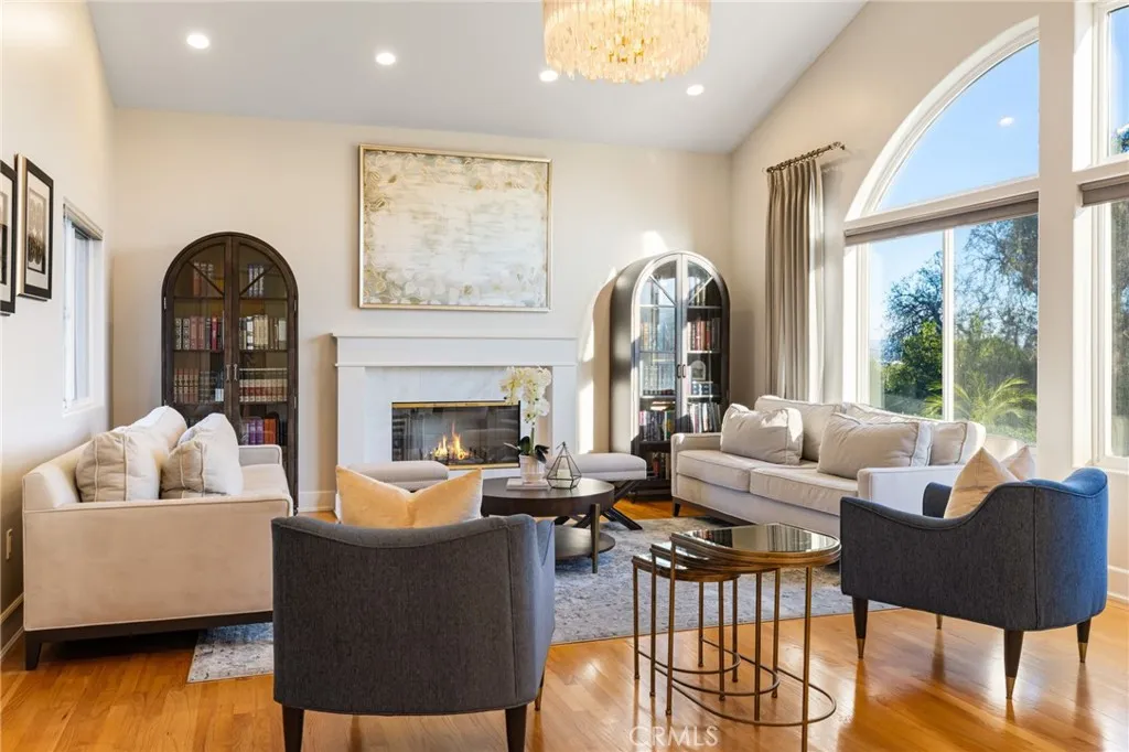 Experience panoramic views like no other from this stunning 5-bedroom, 5-bathroom residence, perched in an exclusive, private gated enclave of just four homes. From nearly every room, you'll enjoy breathtaking, approximately 270-degree views stretching all the way from the majestic Mount San Jacinto to the sparkling coastline of Catalina Island. Inside, the home is bright and open, featuring high ceilings and a dramatic two-story ceiling in the living room that fills the space with natural light. Classic details like crown molding and wainscoting add a touch of charm, while tray ceilings in the primary suite and family room bring a feeling of elegance. The modern kitchen has been beautifully updated with high-end finishes, plenty of cabinets, and generous counter space, making it a joy for both everyday meals and entertaining guests. The adjoining family room is spacious and comfortable, complete with a built-in entertainment center perfect for movie nights or game days. Every one of the five bedrooms is designed for comfort and privacy. The luxurious primary suite is your own personal getaway. Step out onto your private balcony to soak in the incredible views, and unwind in the spa-like bathroom, which features a soaking tub, dual sinks, and plenty of space to relax. The outdoor space feels like a private park. Situated on a large, beautiful lot, the backyard is peaceful and private, enhanced by mature fruit trees and lush landscaping. It's the perfect setting for quiet afternoons or hosting friends and family for an outdoor dinner. A three-car garage provides plenty of ro