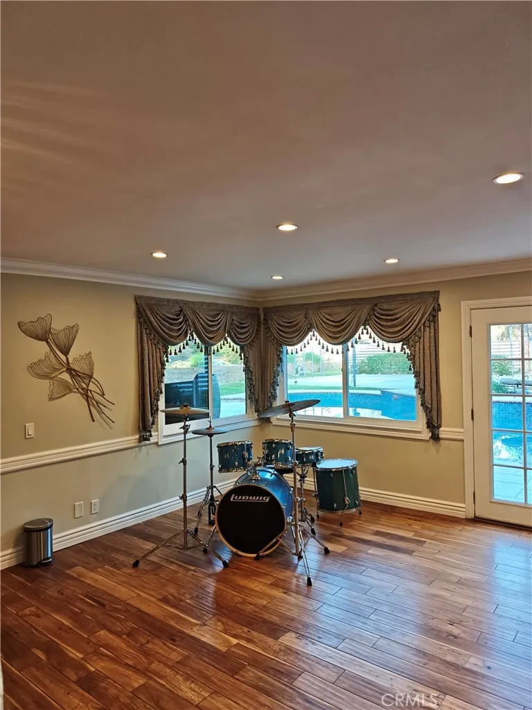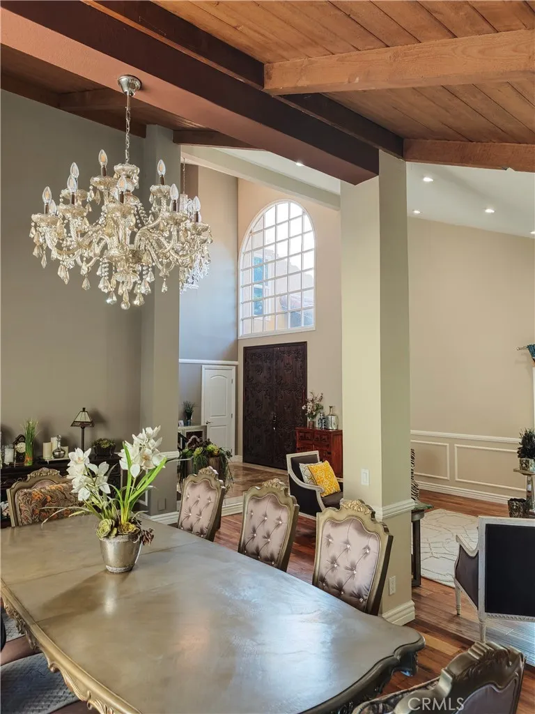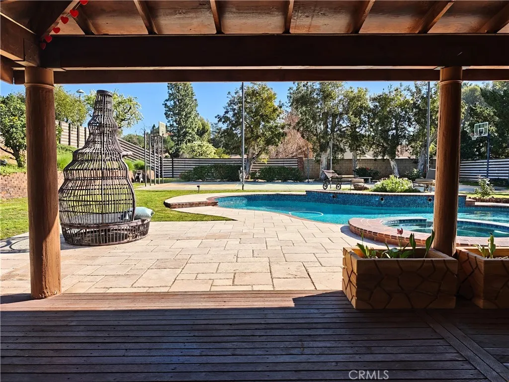 Located in the highly desirable city of Yorba Linda, this entertainers dream sits on a spacious 17,805-square-foot corner lot near scenic riding trails. This elegant 4-bedroom, 4-bath residence offers approximately 3,704 square feet of thoughtfully designed living space for comfort and entertaining. The kitchen opens to a large family room with a custom built-in bar and fireplace. The expansive second-level master suite overlooks the backyard, providing a private retreat with serene views. The home features 1 full bath, 2 three-quarter baths, and 1 half bath. Outdoors, enjoy a swimming pool, spa, lighted basketball/sport court, and lush landscaping including fig, orange, jujube, and pomegranate trees, plus a seasonal wisteria vine. Additional highlights include a garage with a Tesla EV charging dock, mature trees providing privacy, and flexible outdoor living areas perfect for entertaining or relaxing. This property offers generous indoor and outdoor spaces and represents a rare opportunity to enjoy comfortable, elegant, and active living in one of Orange Countys most sought-after communities.