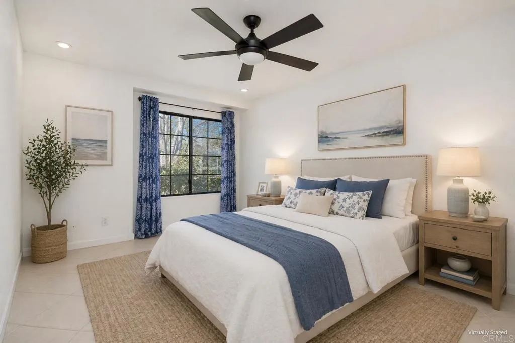 Premium location in The Lakes in Carmel Valley, overlooking peaceful, shimmering pondsthis beautifully remodeled upper-level condo is truly move-in ready. Price improvement of over $10,000!! Step inside to discover a bright and airy floorplan featuring 1 spacious bedroom and 1 fully remodeled bathroom with designer tilework, modern fixtures, and a private entry from the bedroom with mirrored closet doors. An expansive open loft adds incredible versatilityperfect as a second bedroom, home office, creative space, or playroomwith the bonus of extra attic storage. Soaring high ceilings, two skylights, and tile flooring throughout create a light and contemporary feel. The inviting living room offers a warm fireplace and opens seamlessly to the dining area and remodeled kitchen, complete with granite countertops, stainless steel appliances, custom cabinetry, and a separate wine refrigerator. A refrigerator, washer, and dryer are also included (without warranties). Enjoy your morning coffee or unwind in the evening on the lovely, covered porch, where tranquil pond views set the tone for relaxation. The private laundry closet is conveniently located just off the balcony. Additional highlights include: Ample closet space Reserved covered carport with extra storage Beautifully landscaped community with mature trees maintained by the HOA The Lakes community offers an impressive array of amenities: Newly resurfaced Tennis and Pickleball courts Swimming pool and spa Serene lagoons and lakes Barbecue area Community room Plenty of guest parking Photos with furniture are an exampl