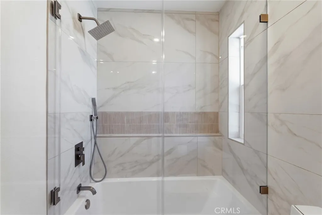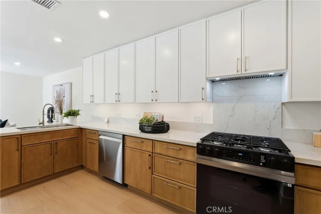 Luxury Fully Renovated Modern Residence | Designer Finishes | Smart Home Upgrades Completely reimagined and fully renovated, this stunning home offers modern design, high-end finishes, and a bright open-concept layout perfect for todays lifestyle. The redesigned floor plan features an expanded foyer with a new 42-inch front door, new laminate flooring throughout, fresh interior paint, and recessed lighting that fills the home with natural warmth. The designer kitchen is the centerpiece of the home, showcasing brand-new custom cabinetry, elegant quartz countertops, a statement waterfall island, integrated wine fridge, high-performance insert range hood, and Samsung Smart appliances including a 5-burner gas range and dishwasher. The kitchen flows seamlessly into the living area featuring built-in display shelving and a beautifully remodeled fireplace, ideal for entertaining. A modern glass staircase railing adds a striking architectural touch, while the upstairs features fully renovated bathrooms with new windows, custom glass shower doors, LED anti-fog mirrors, and designer finishes. The primary suite is enhanced with a new sliding door for added light and comfort. Additional upgrades include new interior doors, glass closet doors, brand-new high-efficiency AC, and a smart garage door opener. Outside, enjoy enhanced curb appeal with fresh exterior paint, modern lighting, a tiled entry pathway, contemporary aluminum slatted gate, updated balcony rails, refreshed landscaping with smart irrigation, and professionally power-washed roof, driveway, and backyard. The garage has als