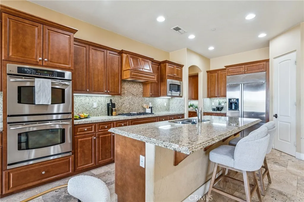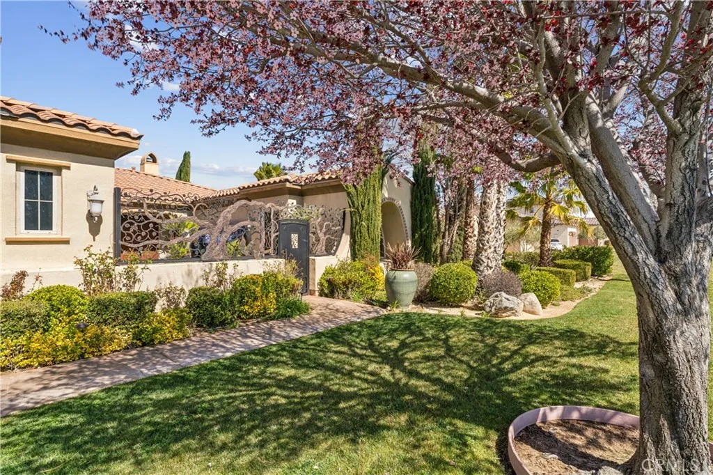 Resort-style living awaits in this beautifully maintained estate located in the gated community of Stonebrook Estates. Set on an expansive 18,908 sq. ft. lot, this 5-bedroom, 5.5-bathroom home offers approximately 4,151 sq. ft. of living space with an expansive floor plan and high ceilings throughout. The home makes a beautiful first impression with meticulously maintained landscaping and a gated courtyard entry beneath a stunning jacaranda tree, creating a peaceful and private arrival. Inside, the layout offers generous living spaces designed for both everyday living and entertaining, including a dedicated home office and an upstairs family or bonus room. Each bedroom is ensuite, providing comfort and privacy throughout the home. The oversized primary retreat offers a relaxing escape and opens directly to the backyard. The backyard is truly an oasis, designed for enjoying Southern Californias beautiful weather. The resort-style setting includes a pool, separate spa, outdoor kitchen, large fire pit with seating area, and multiple spaces for gathering and entertaining. Adding exceptional flexibility is a detached casita with its own private entrance off the courtyard, complete with a full bathroom and cedar-lined closet. This space is ideal for guests, extended family, in-law quarters, a private office, or creative studio. With thoughtful upgrades throughout, meticulous landscaping, and a layout designed for both comfort and entertaining, this property offers a rare combination of space, privacy, and resort-style living.