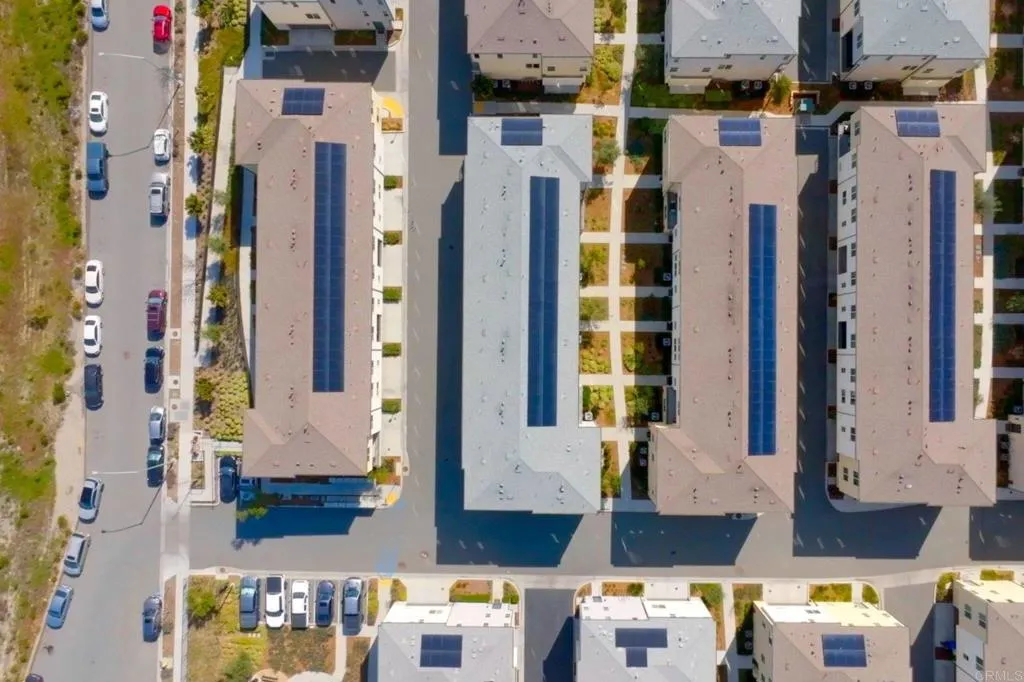 This charming 2-bedroom, 2.5-bathroom corner-unit townhome is located in the desirable Otay Mesa community, offering a perfect blend of modern living, comfort, and convenience. Built in 2022, this beautifully designed home features three levels of living space, providing plenty of room for relaxation, entertaining, and everyday living. The open and contemporary floor plan showcases sleek finishes, abundant natural light, and thoughtful design throughout. Both bedrooms offer privacy and comfort, while the 2.5 bathrooms provide added convenience for residents and guests. The laundry closet is conveniently located upstairs, making daily living even more practical and efficient. Upgraded flooring in upstairs hall and bedroom. Additional highlights include owned solar panels, helping reduce energy costs while promoting sustainable living, and a spacious 2-car garage with extra storage space. The home is also equipped with a Level 2 electric vehicle charging station, offering fast and convenient charging for electric vehicles. Conveniently located with easy freeway access, this home offers quick connections to major employment centers, shopping, dining, and all that San Diego has to offer. The Otay Mesa neighborhood is known for its family-friendly atmosphere, nearby parks, schools, and local amenities. This home is ideal for first-time homebuyers, professionals, or anyone looking for a modern, low-maintenance lifestyle in a growing community. Don't miss this opportunity to own a stylish and energy-efficient home in one of South San Diego's most desirable areas.
