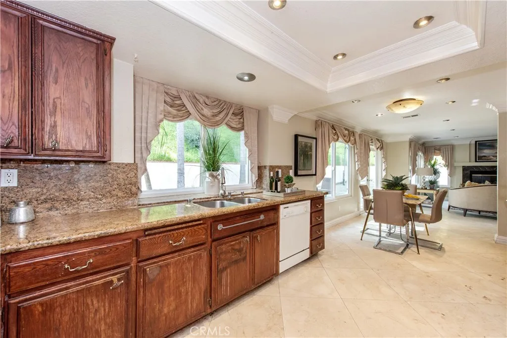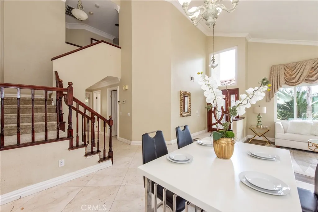 Welcome to this stunning retreat tucked away on a quiet street in the highly sought-after Sunrise Hill neighborhood of Rowland Heights. As you step inside, you are instantly greeted by soaring vaulted ceilings in the living room, elegant marble flooring, and an abundance of natural light that creates an airy, inviting atmosphere. The thoughtful floor plan is designed for both elegant entertaining and comfortable daily living, featuring beautiful crown molding and modern recessed lighting throughout. The heart of the home seamlessly connects the family room to the kitchen, where a sliding glass door opens to an expansive backyardperfect for indoor-outdoor living and soaking in the sweeping city light and mountain views that Sunrise Hill is known for. Convenience and flexibility are front and center, featuring a highly desirable downstairs bedroom and full bathroom that is ideal for overnight guests, multi-generational living, or a quiet home office. Upstairs, you will find the remaining bedrooms, including a generously sized primary suite that serves as a true private sanctuary, complete with high ceilings and tranquil hillside views to wake up to every morning. An individual indoor laundry room and a spacious three-car garage provide ample storage and everyday practicality. Situated on nearly half an acre, the sprawling lot offers endless possibilities for creating your own personalized outdoor oasis. Beyond the property lines, this home places you in an exceptionally convenient location. You are just minutes away from highly rated public schools, diverse shopping centers,