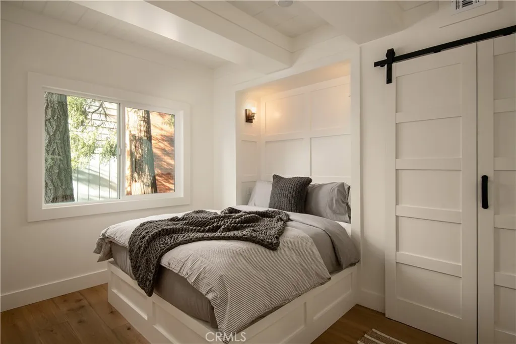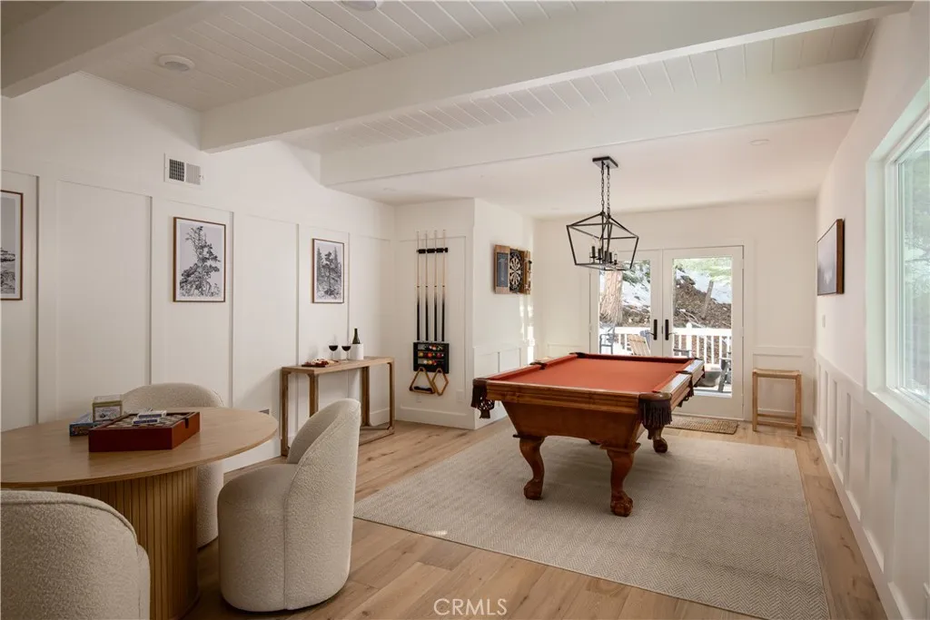 The Arrowhead Trail House With Potential Half a Double Dock Available. Beautifully reimagined and fully renovated mountain retreat with Lake Rights, ideally located along the coveted ALA trail with direct access to Lake Arrowhead. This stunning home offers the rare convenience of reaching the lake in under two minutes via a private bridge connecting the property to the lake trail, creating an effortless lake lifestyle. Inside, the home features 3 spacious bedrooms and 3 beautifully renovated bathrooms, thoughtfully redesigned with modern finishes and timeless mountain style. Nearly every element of the home has been updated, blending clean contemporary design with warm natural textures to create a welcoming and comfortable retreat. The main living spaces feature wide-plank flooring, custom millwork, and abundant natural light, while the remodeled kitchen offers stylish cabinetry, stone countertops, and stainless appliancesperfect for both everyday living and entertaining. Downstairs, a dedicated game and entertainment room provides the ultimate gathering space, complete with a pool table and game table, making it ideal for hosting friends and family after a day on the lake or the slopes. Outdoor living is equally impressive with two large entertaining decks surrounded by mature trees. The lower deck features a private spa and lounge area, creating the perfect place to relax under the stars. From here, a private bridge leads directly to the ALA lake trail, giving you easy access to the shoreline and nearby lakefront. Additional upgrades include air conditioning for year-roun