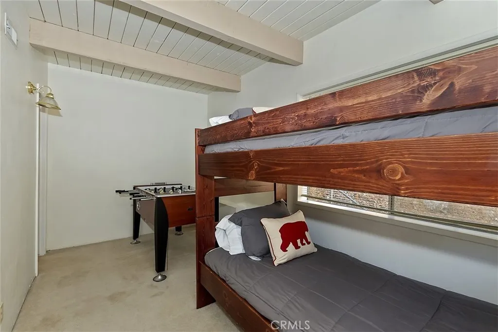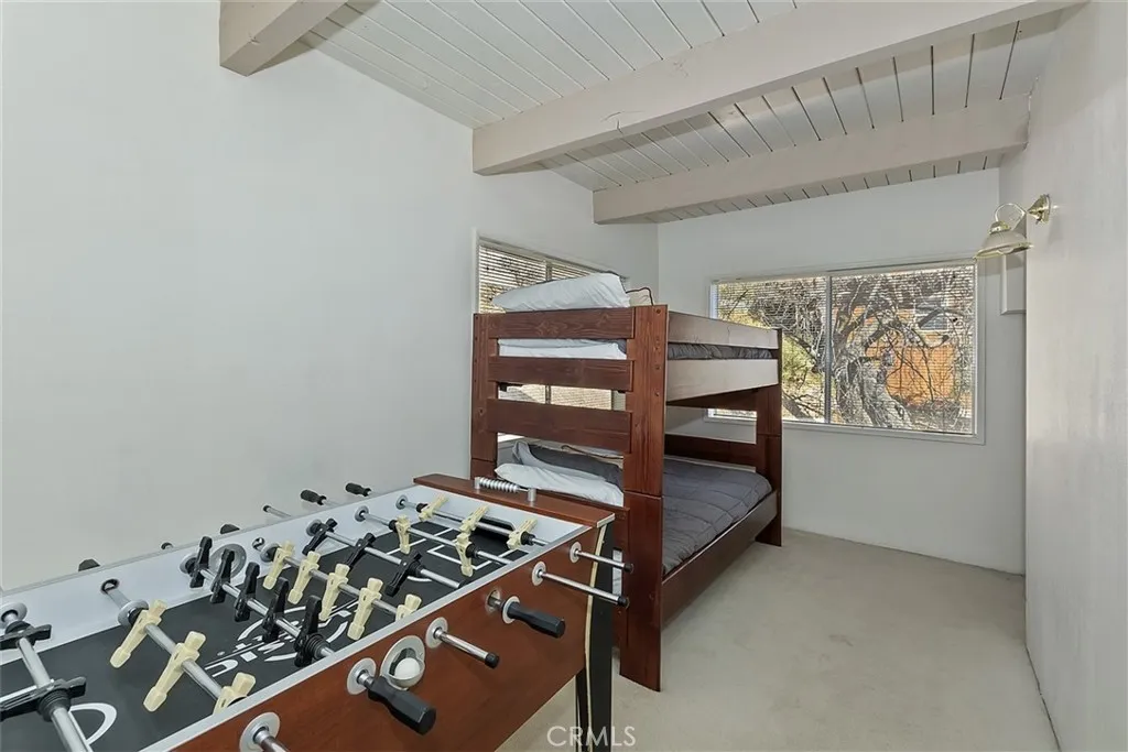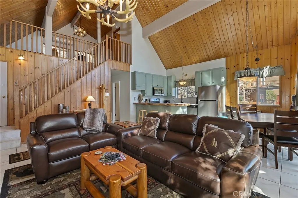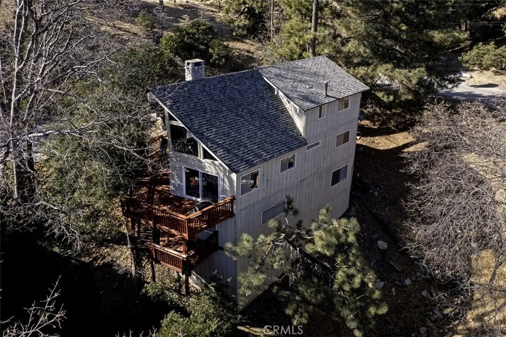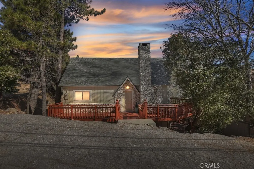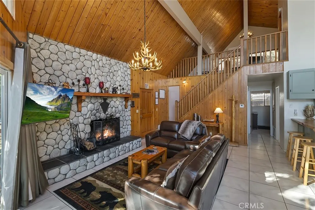 Priced to sell! Classic Lake Arrowhead "Prow Front" cabin with "lake rights" to private Lake Arrowhead. Main floor living area is perfect for entertaining with an open floorplan featuring a wall of windows and slider out to wrap around deck overlooking Grass Valley Lake area and ridgeline views. Living room has a rock fireplace for those cool mountain evenings. Nicely updated kitchen with quartz counters, breakfast bar with a live edge wood slab counter top and stainless appliances with an adjacent dining area. Main level also has two good sized bedrooms and full bathroom. Upstairs you will find a huge loft set up as the primary bedroom with split A/C unit and private bathroom. Downstairs is a separate family room with another rock fireplace, pool table and slider out to another large deck. Also downstairs are two bunk rooms, laundry area and another bathroom. This could be a complete package with a multiple dock slip and boat available for additional $$.