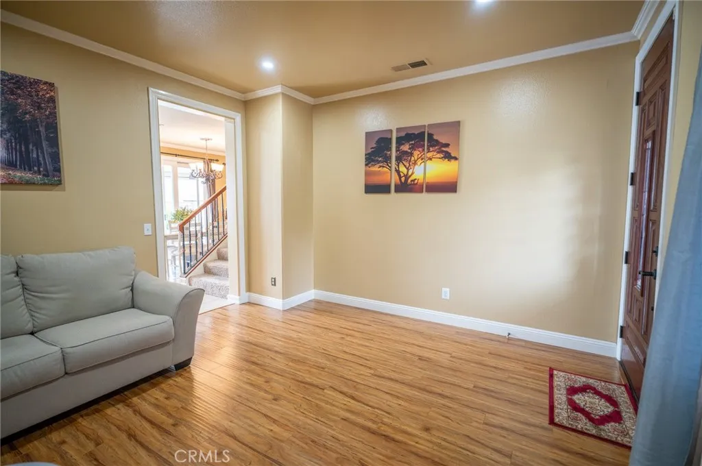 Masterpiece home located in the beautiful gated community of Independence at Terra Vista. This stunning home is loaded with upgrades! A welcoming entrance features beautiful landscaping and lush greenery. The home offers a high-ceiling living and dining room with custom window coverings and abundant natural light. The separate family room is perfect for entertaining, featuring a custom fireplace console, built-in cabinetry, and a premium stereo surround sound system with an integrated TV setup. The kitchen includes granite countertops, a cozy breakfast nook, and ample cabinet space. Granite countertops are also featured in all bathrooms. The home offers three spacious bedrooms and three bathrooms. The backyard is absolutely gorgeous and very private, surrounded by mature trees that create a peaceful, relaxing environment. Enjoy outdoor living with a built-in barbecue, an outdoor stereo system, and a beautifully covered patio? Additional features include a two-car garage with built-in cabinets and direct access to the house. Recent improvements include termite tenting with clearance, a newly installed range hood, and new LED ceiling lights. Conveniently located very close to schools, parks, shopping centers, and the Victoria Gardens Mall, with easy access to all major freeways.