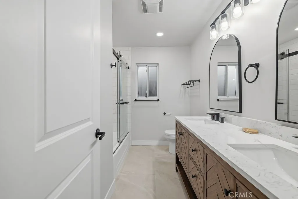 Incredible Opportunity in Porter Ranch! Welcome to this beautifully renovated 4-bedroom, 3-bathroom home with a versatile bonus room, located in one of Porter Ranchs most desirable neighborhoods. Thoughtfully redesigned with timeless finishes and modern upgrades, this home offers the perfect balance of comfort, style, and functionality. Step inside to a bright, open layout featuring new drywall, fresh paint, smooth ceilings, recessed lighting, and wide-plank German flooring throughout. The inviting living area is anchored by a gas and wood-burning fireplace with porcelain tile, while large sliding glass doors create seamless indoor-outdoor living. The custom-designed kitchen blends elegance and practicality with soft-close cabinetry, pantry storage, under-cabinet lighting with hidden outlets, a custom hood, 36-inch range, and all-new appliances. Bathrooms offer a spa-like feel with porcelain tile, new vanities, and a Moroccan plaster shower in the primary suite. Major upgrades include a new roof (30-year warranty), copper plumbing, updated electrical, serviced sewer lines, and upgraded HVAC with smart thermostat. Situated on a 10,000+ sq ft lot with private alley access and gated entry, the backyard features a 20 x 12 pergola, fresh landscaping, sensor lighting, mature fruit trees, and cypress for added privacy. Additional highlights include an EV charger, new gutters, patio slider, and sprinkler system with timer. Includes 1-year workmanship warranty + home warranty, with appliances eligible for manufacturer warranties. ADU potential (buyer to verify). Located in a highly