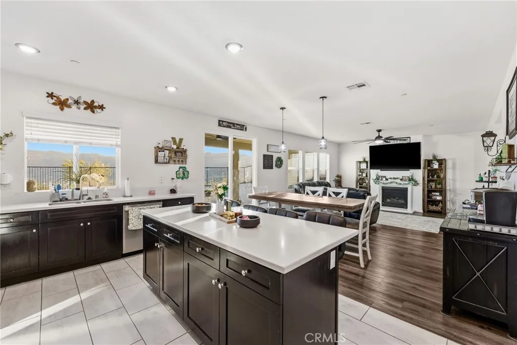 Discover exceptional living in this spacious 5-bedroom, 3-bath home with a loft located in the desirable Alberhill Ranch community. This beautifully designed two-story residence offers both comfort and functionality, highlighted by amazing panoramic views that make every day feel elevated. The main floor features a rare full bedroom and bathroom downstairs, perfect for guests, multigenerational living, or a private office setup. The open-concept living area flows effortlessly into the dining space and kitchen, creating an ideal environment for entertaining and everyday living. Upstairs, youll find a generous loftperfect as a second living room, play area, media room, or home workspace. The primary suite offers retreat-like comfort with sweeping views, a spacious layout, and a well-appointed en-suite bath. Three additional bedrooms provide plenty of space and flexibility for family, guests, or hobbies. There is a 2-car garage, well-planned layout, and access to Alberhill Ranchs resort-style amenities, this home delivers beauty, space, and convenience all in one.