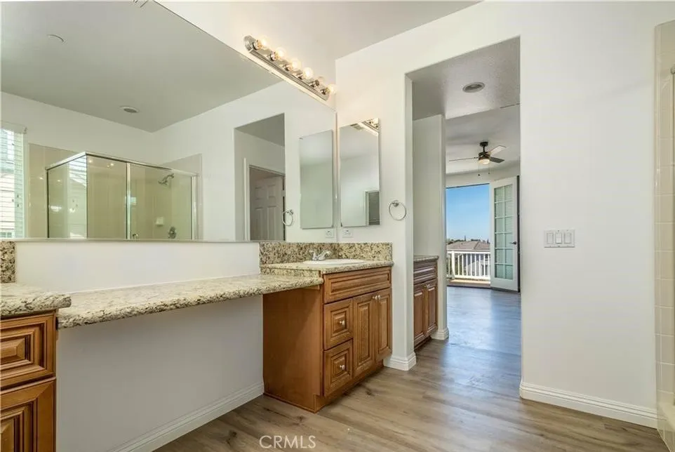 Nestled in a quiet neighborhood of Loma Linda. The home blends comfort, efficiency, and style with modern upgrades throughout. This beautiful, spacious home is located less than 1 mile from LLU and LLUMC! The home has been well maintained with updates throughout interior along with luxury vinyl plank flooring, stainless steel hardware and large, basin sink. Quartz Countertops, white tile backsplash with under cabinet lights and Stainless Steel Appliances. Upgraded bathroom cabinetry with Granite countertops. There is a bedroom with full bath downstairs and a walk-in closet off the entry way. A separate living room with formal dining area and kitchen is open floor plan to family room. Primary bedroom consists of French doors to balcony with amazing views!. Upstairs loft has been converted to a large 6th bedroom. Independent dual air conditioning systems with separate thermostats. There is a nice view from the large backyard and peek-a- boo views of city skyline and surrounding mountains from various rooms of this house. You won't want to miss this one! Homes in this neighborhood rarely go on market.