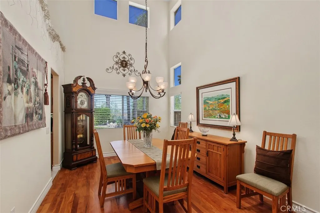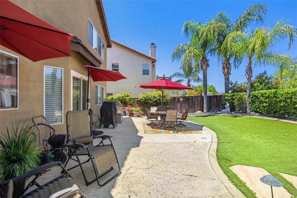 **PRESTIGIOUS REDHAWK COMMUNITY** Located in the coveted Redhawk community and within top-rated Temecula schools. Experience refined living in this beautifully maintained four-bedroom view home located in Temeculas prestigious Redhawk community. This residence offers an open and light-filled floor plan with soaring vaulted ceilings and a seamless flow between the main living spaces. The formal dining area connects to a spacious family room featuring a gas fireplace, custom built-ins, and ceiling fan. The adjacent gourmet kitchen includes granite countertops, a center island w/ seating, stainless steel appliances, recessed lighting, extensive cabinetry, and a walk-in pantry. Hardwood flooring enhances the main level, complemented by tile in the kitchen. A well-appointed powder room with a heated bidet toilet seat completes the first floor. Upstairs, the expansive primary suite offers panoramic hilltop views, a generous sitting area, a soaking tub, heated bidet toilet seat, recirculating hot water pump, ceiling fan, and his/hers walk-in closets. Three additional bedrooms include ceiling fans and ample closet space, with one featuring its own walk-in closet. A full bathroom with dual sinks and a tub/shower combination serves the additional bedrooms. The private backyard is designed for low-maintenance enjoyment with astro turf, an open patio, and mature landscaping. Additional features include a three-zone HVAC system with integrated Air Scrubber, a three-car garage with built-in cabinetry, and a dedicated 220V component. Located near golf courses, parks, hiking and biking tra