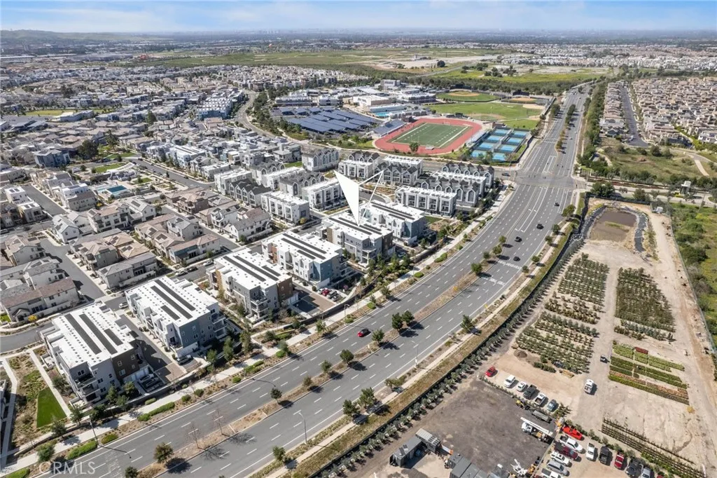 Discover an unparalleled living experience in this stunning SINGLE-LEVEL penthouse, rarely available in the coveted Solis Park Community of Great Park Irvine. This 2,585 SqFt meticulously designed home offers 4 bedrooms, 3.5 bathrooms, and breathtaking hill views. Walk up the stairs to the third level and step into a true masterpiece of modern living, featuring an expansive open-concept layout where the gourmet kitchen, complete with quartz countertops, a generous island, and top-tier stainless steel appliances, flows seamlessly into the dining and living areas. Enjoy outdoor entertaining on your private balcony. The thoughtfully designed floor plan provides ultimate privacy with a secluded primary's suite and secondary suite, each boasting walk-in closets and en-suite bathrooms. Additional two secondary bedrooms are found down the hallway, each with a walk-in closet and sharing a full bathroom across the hall. Enhance your lifestyle with owned solar panels and plantation shutters for energy efficiency. This home also includes a two-car garage and a separate storage room, all within a secure building featuring code and QR entry. Live moments from award-winning Irvine Unified schools, including Solis K-8 and Portola High. Great Park residents enjoy an abundance of amenities, from Olympic pools and spas to parks and sports courts. Experience unparalleled convenience with premier shopping, dining, entertainment, major freeways (I-5, 133, 241), John Wayne Airport, and top medical facilities just minutes away.