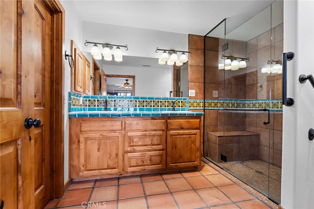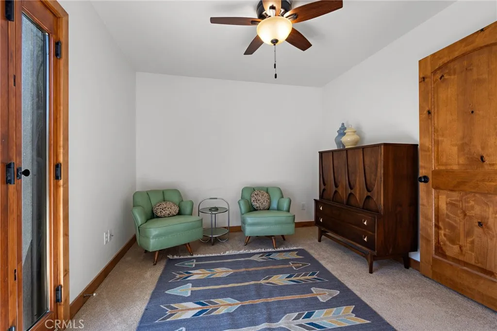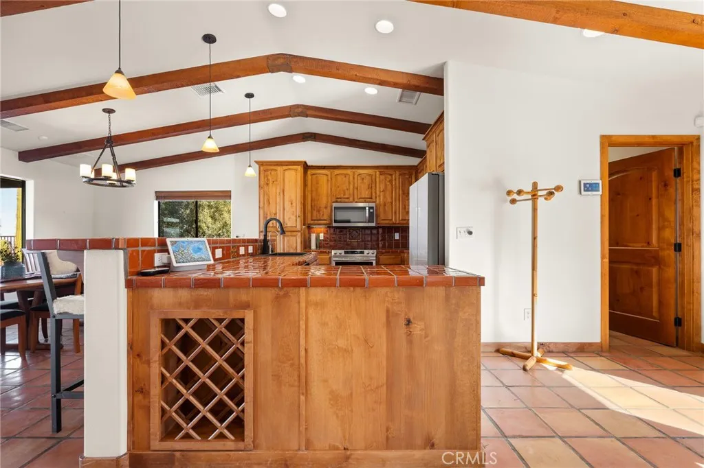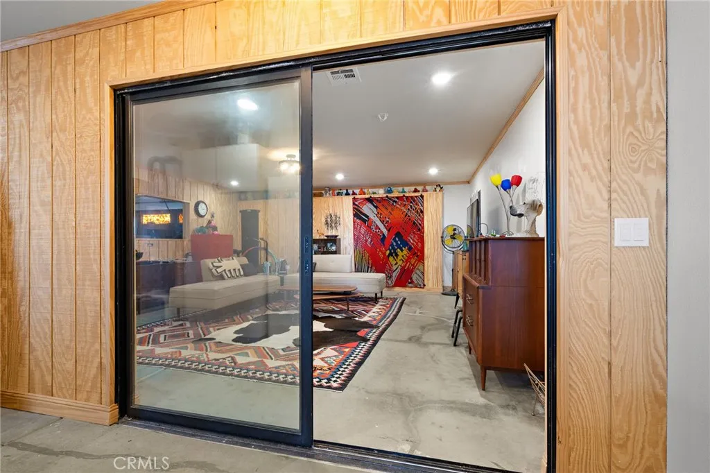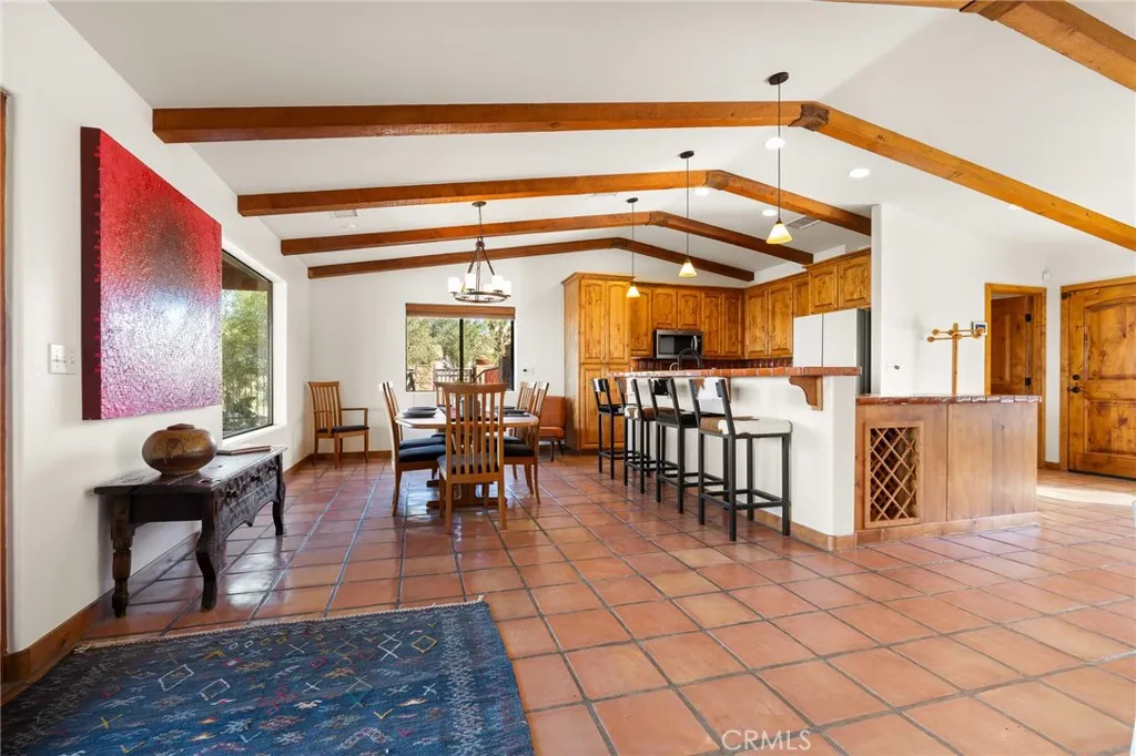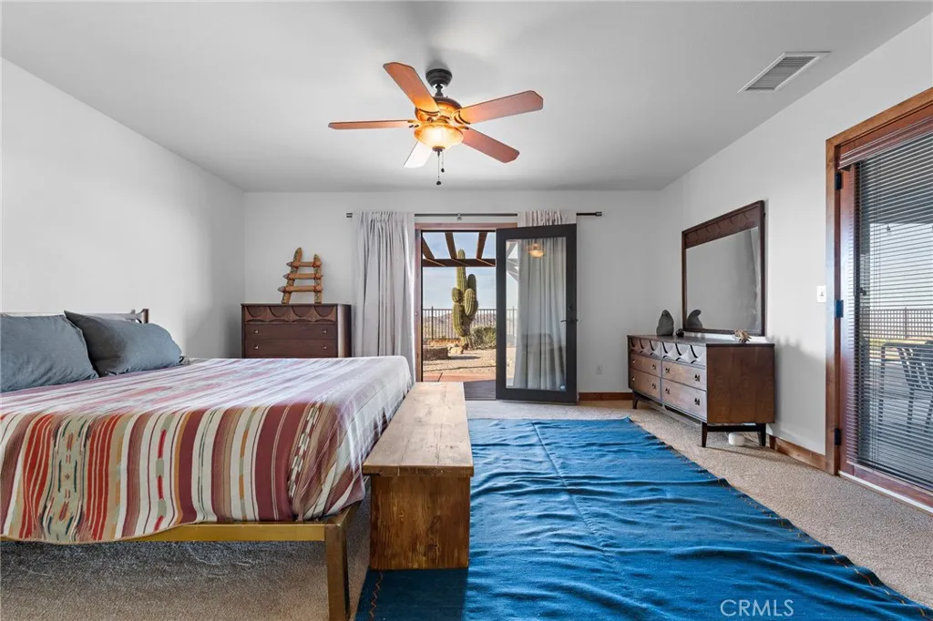 Welcome to a true desert masterpiece in the highly coveted Upper Friendly Hills of Joshua Tree. This stunning 2007 Santa Fe-style home offers 3 bedrooms, 2 bathrooms, and 1,735 square feet of thoughtfully designed living space, perfectly situated on 2.24 acres of pristine High Desert landscape. From the moment you arrive, mature landscaping and iconic Joshua Trees frame the property, while saguaro cacti and curated garden spaces create a setting that feels both intentional and inspiring. Inside, Spanish tile flows throughout the home, complemented by exposed beams, a warm fireplace in the living room, and an effortless feng shui that makes the space feel balanced and inviting. The kitchen offers generous prep space and seamless indoor dining and entertaining areas designed for gathering. The layout is ideal, with two guest bedrooms positioned toward the front of the home, while the primary suite enjoys privacy and direct access to the backyard oasis. Step outside to a breathtaking pool and hot tub overlooking the valleyarguably some of the best views in all of Joshua Tree. Whether you're entertaining on the expansive front porch, hosting sunset dinners out back, or relaxing under the desert sky, every angle of this property is designed to impress. The three-car garage offers flexibility, with the two-car portion currently converted into an art or music studio, easily convertible back if desired. Paid solar adds efficiency and long-term value. Located just minutes from the West Entrance of Joshua Tree National Park, this is more than a homeits a classical work of art set aga