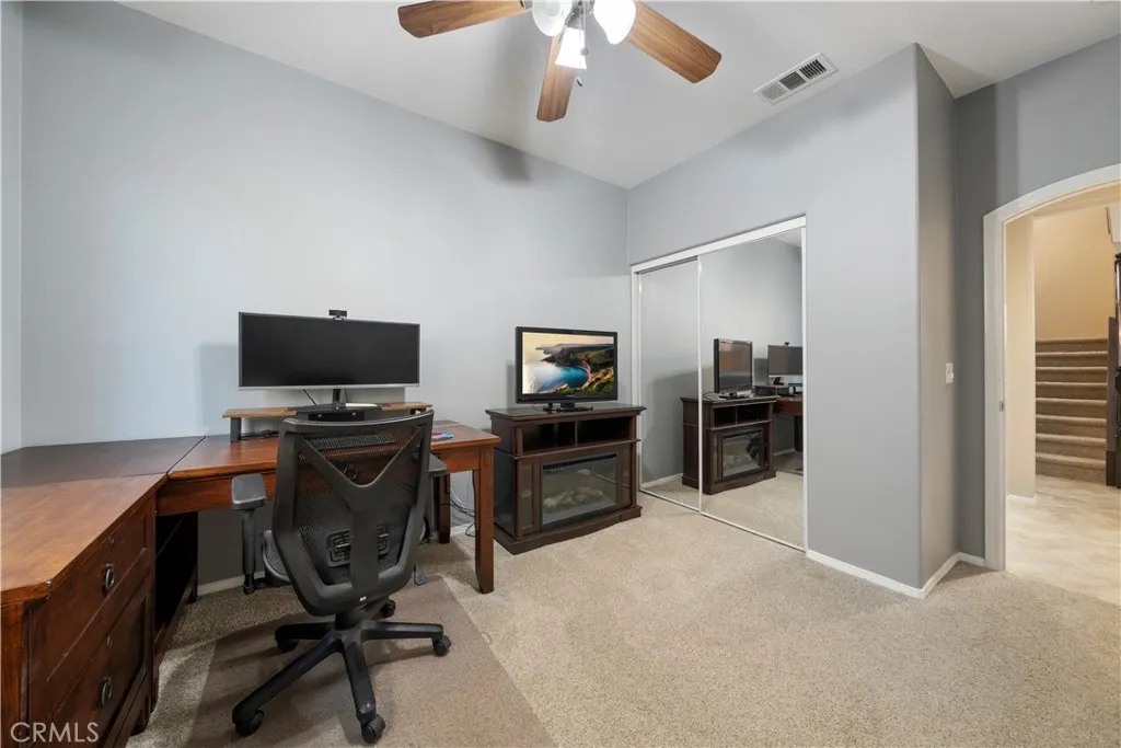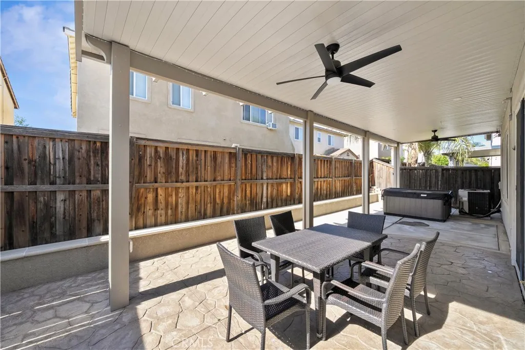 Welcome Home to Exceptional Living and Entertaining! 16521 Sedona Street is an absolutely beautiful two-story, move-in ready home located in the highly desirable gated Viscaya community with pool access. This well-maintained and upgraded 4-bedroom, 3-bath, 2,517 sqft residence is nestled within the secure and sought-after enclave of Viscaya. This stunning property features a spacious open floor plan designed for modern living, complete with a formal dining room and a versatile office or bonus room with elegant ?PPPwindow wood blinds. The kitchen opens seamlessly to the family room and features granite countertops, creating the perfect space for both entertaining and everyday living. The family room showcases a builder-upgraded fireplace mantel and banister, elegant arched doorways, while newer ceiling fans are hardwired throughout the home. Additional upgrades include newer flooring and carpet, tinted windows,? throughout. Upstairs features a spacious loft with plenty of windows, providing abundant natural light. The primary suite offers a luxurious retreat featuring a spacious master bedroom, walk-in closet, and a beautifully upgraded walk-in shower. Both upstairs bathrooms feature double vanities, providing convenience and ample space. The exterior is equally impressive, offering a 2-car garage and an estate-style driveway for additional parking. The private fenced backyard includes a well-built 2-foot retaining wall, artificial turf, and concrete hardscaping throughout the front and backyard. Enjoy outdoor living under the aluminum patio cover built in 2020, perfect for