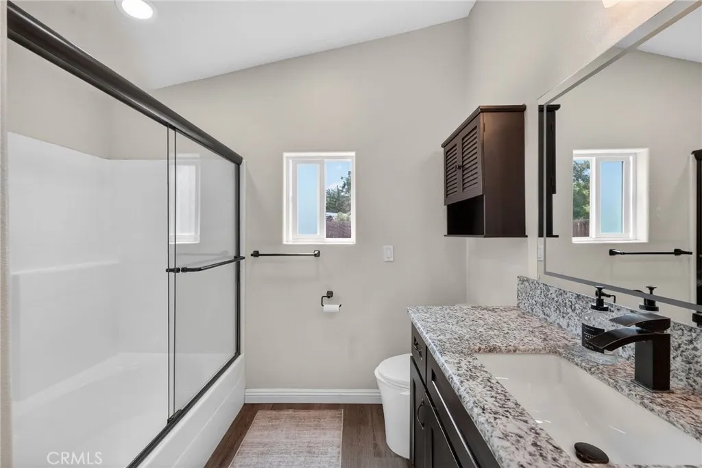 *** BACK ON MARKET - PREVIOUS BUYER'S HOME WAS CONTINGENT AND FELL OUT OF ESCROW*** Welcome to this charming and well-maintained manufactured home, featuring owned and paid-off solar. Located in the desirable The Farm Community, this home offers comfort, modern upgrades, and a peaceful setting with convenient access to the city. Inside, you'll find wood-laminate flooring throughout, dual-pane windows, recessed lighting, and a tankless water heater. The home also includes integrated Ethernet in every room, a smart garage door opener, and smart lighting in the primary bedroom and backyard. The upgraded kitchen features granite countertops, updated cabinetry, a farmhouse apron stainless steel sink, stainless steel appliances, built-in microwave, and reverse osmosis drinking water at the sink. Both bathrooms have been tastefully updated with granite countertops, upgraded vanities, modern fixtures, glass shower doors, updated lighting, and lighted mirrors. The floor plan offers three spacious bedrooms, two bathrooms, and a bright great room that flows seamlessly into the dining area and kitchen, creating an inviting open-concept living space. A large indoor laundry room with exterior access adds everyday convenience. The exterior features a private gated entry, detached two-car garage, covered patio, in-ground spa, and mature landscaping, providing plenty of space to relax or entertain. Residents of The Farm Community enjoy country-style living with city convenience, easy access to the Interstate 15 and Interstate 215, a low tax rate, and outstanding amenities including citrus g