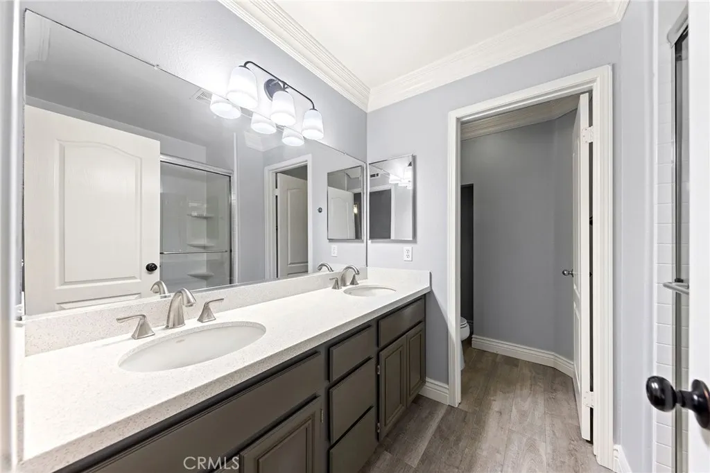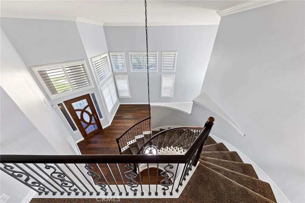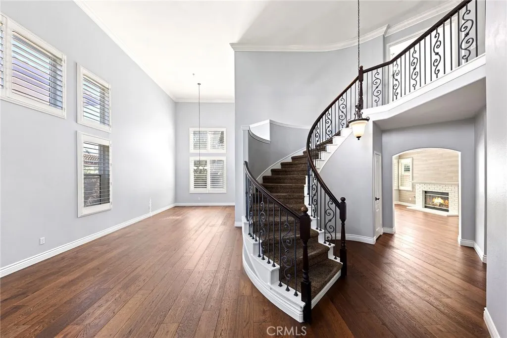 This 5 bedroom 3 bathroom house with 2 bedroom downstairs located in a quite area. house features : the gourmet kitchen with stainless appliance, island granite counter -tops . cDual pane anlin windows, 4.5 clear view wood shutters and trane 5 zone HVAC with hepa filter system. custom wrought iron staircase, hand distressed engineered wood flooring, high baseboards, crown molding, whole house attic fan adnd designer touches throughout, private backyard,no hoa and low taxes.