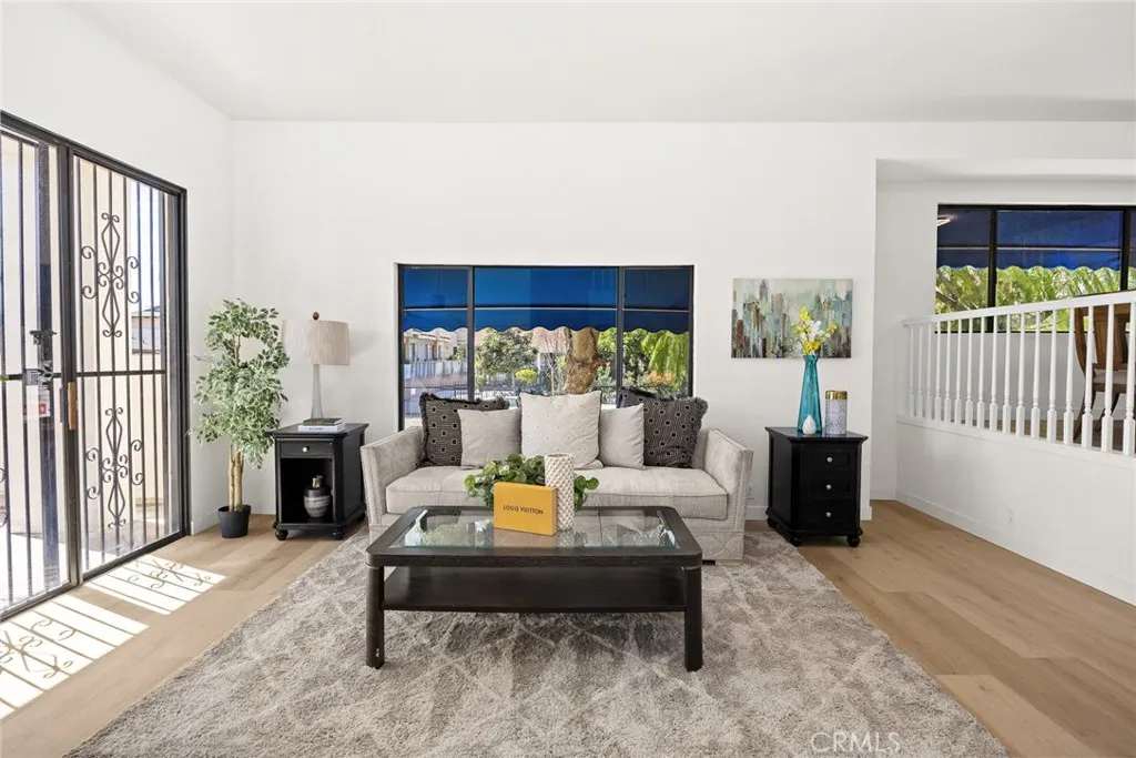 Welcome to this beautifully updated, move-in-ready townhouse, a south-facing end-unit located in the heart of Monterey Park. It provides a spacious living area of 2,113 SqFt featuring 4 bedrooms, 3 bathrooms, plus a bonus room of approximately 360 SqFt, which could be used as a 5th bedroom, media room, or home gym. Upon entering, you are greeted by a spacious living room with a sliding door that opens to a private, fenced patio, a great spot for relaxing or casual outdoor dining. A few steps up, you'll find a large formal dining room. It flows seamlessly into the fully updated kitchen, which boasts brand-new modern finishes. A versatile den that can easily serve as a fourth bedroom, home office, or library. A convenient bathroom completes the main level. The spacious primary suite is a highlight, featuring high ceilings with recessed lights, a large walk-in closet, and a private balcony. The ensuite bath includes dual sinks and a tub-and-shower combination. Two additional bedrooms share a full bathroom that has been tastefully renovated with new counters and stylish backsplashes, plus a skylight that fills the room with natural light. Throughout the home, you'll find newly installed vinyl flooring and fresh paint. Additional features include a closet at the entrance, a convenient row of built-in cabinets in the second-floor common area, a lower-level laundry area, and direct access to a spacious two-car attached garage with abundant overhead storage cabinets. Location is key, and this home delivers. It is close to top-rated schools, supermarkets, banks, diverse restaurants,