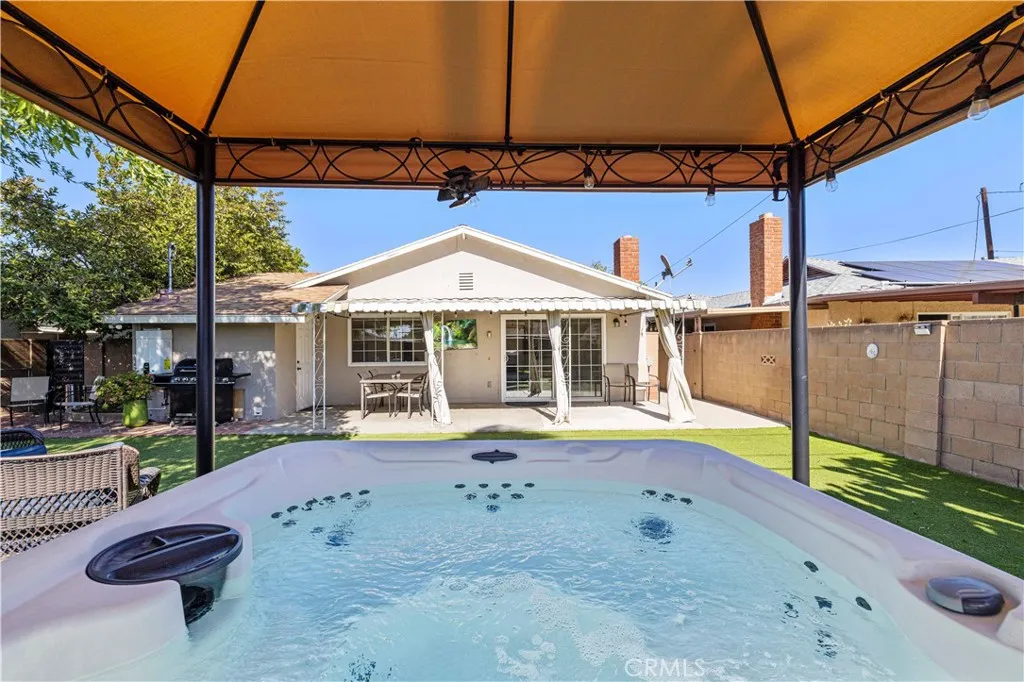 Prime gem tucked away in a quiet, desirable pocket of Sun Valley where everyday living feels like a private retreat. From the moment you arrive, the inviting curb appeal, drought-tolerant landscaping, and charming orange tree create a warm and welcoming first impression. Inside, abundant natural light pours through expansive windows and sliding glass doors, filling the spacious living and dining areas. Lovingly maintained, this single-level home features a cozy fireplace, recessed lighting, new flooring, and an updated kitchen with granite countertops and a breakfast barperfect for both daily living and effortless entertaining. The open floor plan creates a seamless flow between the living room, dining area, and kitchen. Sliding glass doors lead to your own backyard sanctuary. A covered patio, vibrant water-wise turf, native landscaping, mature guava tree, and relaxing spa create a peaceful outdoor escapeideal for al fresco dining, entertaining guests, or simply unwinding under the California sky. Designed with comfort and efficiency in mind, the home includes a tankless water heater and EV car charger. The two-car garage offers excellent potential for conversion into an ADU, multigenerational living space, or additional income opportunity (buyer to verify). Recent upgrades include new flooring throughout, a tankless water heater, updated bathroom vanities with reglazed tubs, and a full appliance package including refrigerator, dishwasher, and washer/dryer. Additional highlights include an alarm system with cameras, coded entry access, paver driveway, EV charger, and a bac