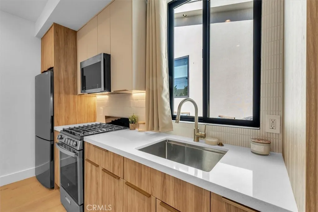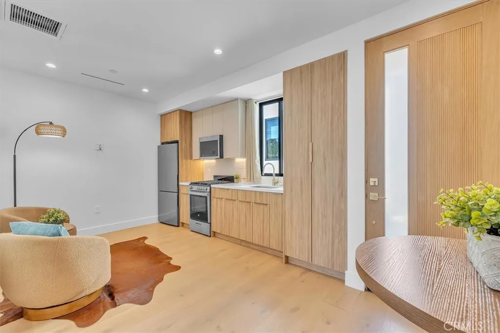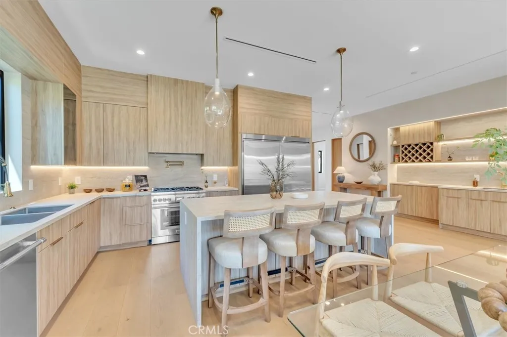 Set on a beautiful street in the heart of Valley Village, this newly built residence showcases striking architecture, thoughtful design, and exceptional attention to detail. Spanning five bedrooms and five and a half bathrooms, the home blends refined finishes with a layout designed for modern living and effortless entertaining. Inside, soaring 10-foot ceilings and a seamless open-concept floor plan create a sense of scale and flow throughout the main living spaces. The chefs kitchen serves as a true centerpiece, appointed with top-of-the-line Thermador appliances, sleek cabinetry, and generous workspace for both everyday living and hosting. Just off the kitchen, a sophisticated bar complete with sink and beverage refrigerator adds a stylish element for entertaining. Modern convenience meets elevated living with a full camera security system, integrated indoor and patio speakers, and a fully gated perimeter providing privacy and peace of mind. Additional highlights include a spacious laundry room and a beautifully designed deck patio that extends the living space outdoors, creating an inviting setting for gatherings or quiet evenings under the California sky. The backyard is designed for both relaxation and entertaining, featuring a resort-style pool and spa surrounded by lush, thoughtfully curated landscaping that enhances the propertys natural beauty. The homes smooth stucco exterior paired with stone accents adds a refined contemporary presence and striking curb appeal. Adding even more versatility, the property includes a private 1-bedroom, 1-bathroom ADU complete with