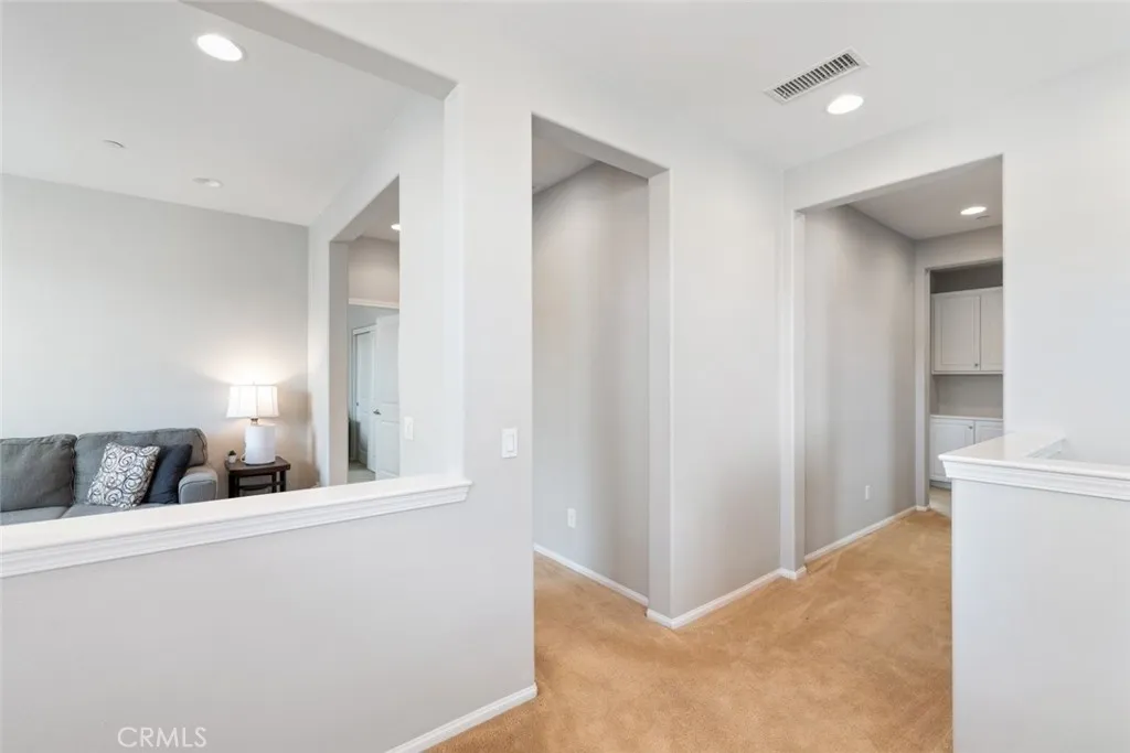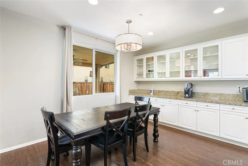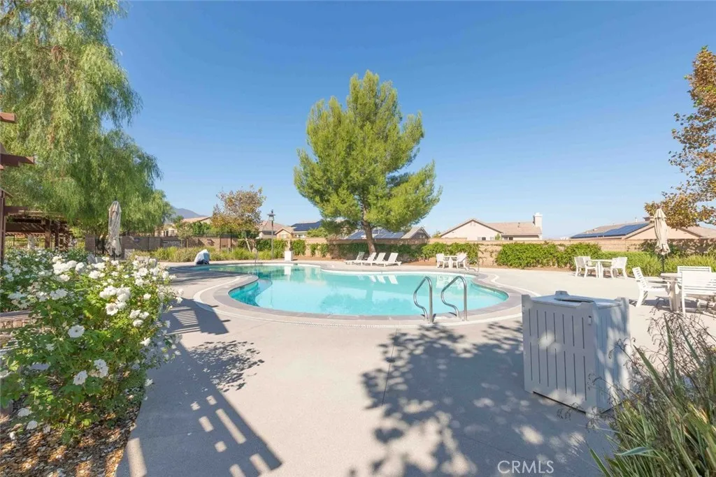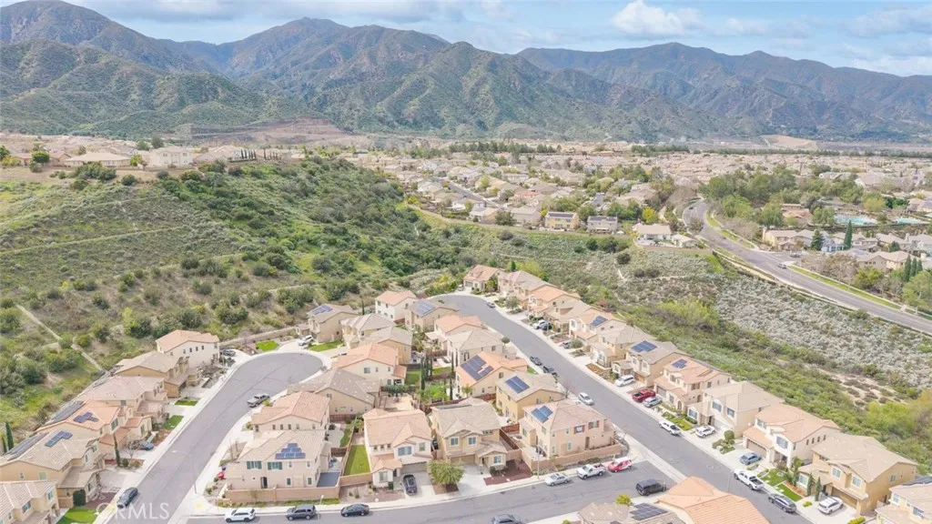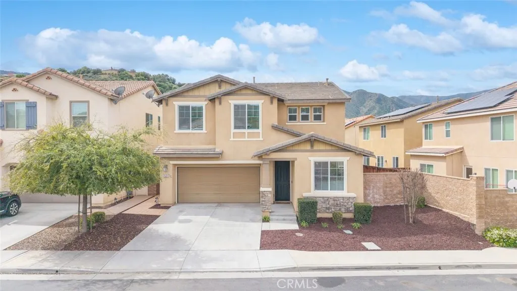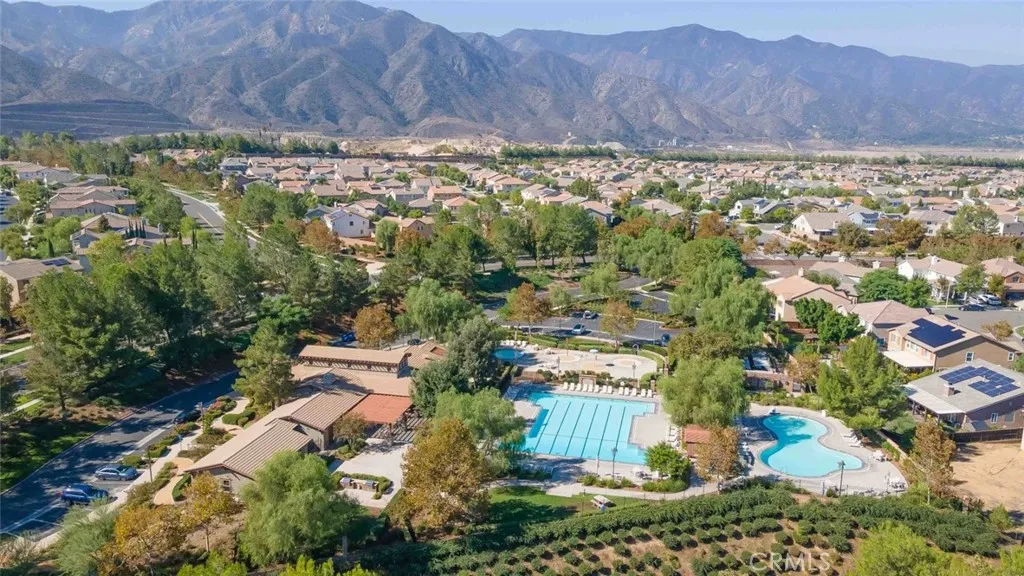 Situated in the gated neighborhood of Serrano Ridge within the beautiful master-planned community of Sycamore Creek, this beautifully maintained home is offered by the original owner and is on the market for the first time. From the moment you step inside, you will appreciate the bright and open floor plan and the pride of ownership throughout. The home features gorgeous laminate flooring and a spacious kitchen designed for both everyday living and entertaining. The kitchen offers white cabinetry, stainless steel appliances, elegant granite countertops, a center island with sink, and stylish pendant lighting. The kitchen flows seamlessly into the spacious family room and dining area, where a cozy fireplace creates a warm and inviting gathering space. The versatile floor plan includes a downstairs bedroom and bathroom, perfect for guests or multi-generational living. Upstairs you will find a generous loft, ideal for a media room, home office, or play area, along with a convenient upstairs laundry room complete with cabinetry and sink. The ample master bedroom provides a relaxing retreat and features a spacious walk-in closet. Additional interior highlights include ceiling fans, window blinds, plantation shutters, and recessed LED lighting throughout. Step outside to the spacious backyard, featuring a stamped concrete deck and a massive Alumawood patio cover complete with lighting and ceiling fans, creating the perfect setting for outdoor entertaining or relaxing evenings at home. Save big on energy costs with the leased solar panel system.Residents enjoy access to the outsta