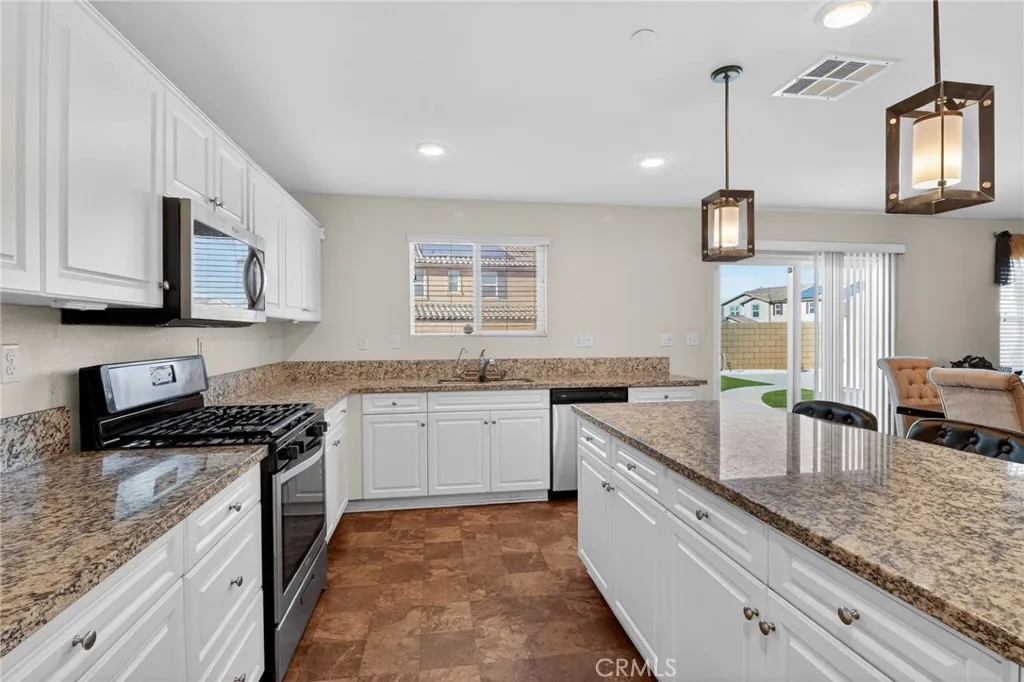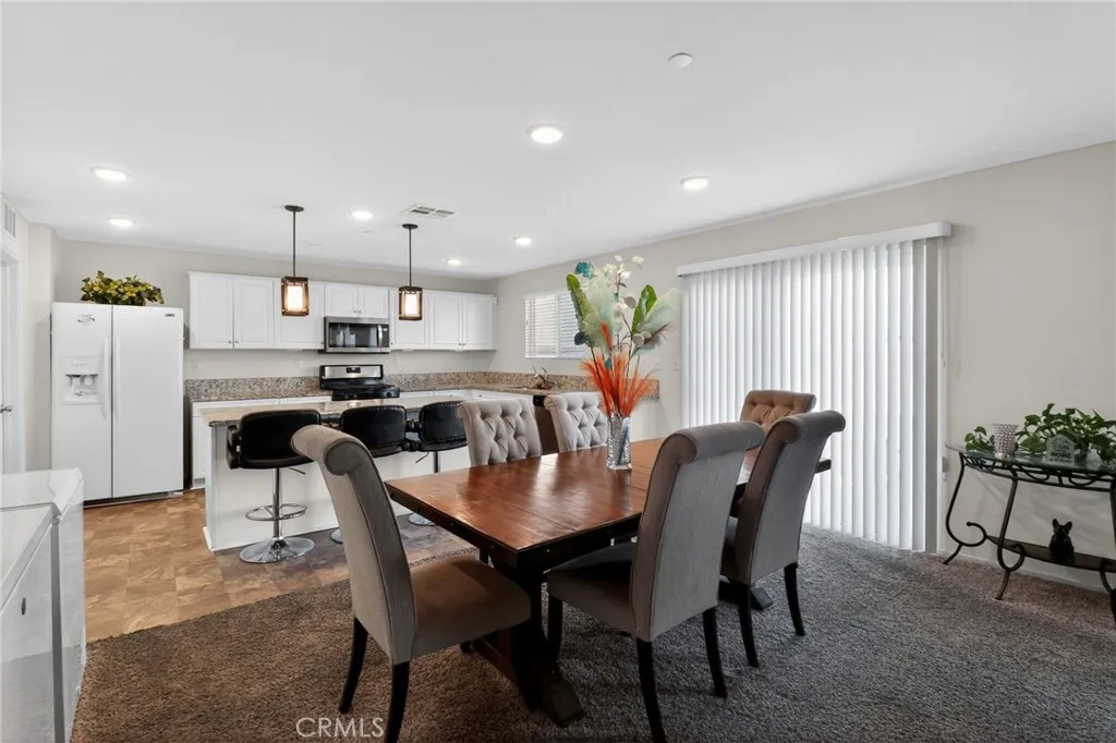 Welcome to this beautifully upgraded 5 bedroom, 3 bathroom residence offering approximately 2,901 square feet of thoughtfully designed living space, built in 2018. This stunning two story home blends modern elegance with everyday comfort, creating a space that is both functional and inviting. At the heart of the home is a gourmet kitchen designed for entertaining, featuring a large center island, abundant cabinetry, and a spacious walk in pantry. The kitchen flows seamlessly into the dining and living areas, creating an open concept environment perfect for hosting gatherings or enjoying quiet evenings at home. Throughout the home you will find carefully selected upgrades and exceptional pride of ownership, making this property truly stand apart. Every detail reflects quality craftsmanship and thoughtful design. Upstairs offers a spacious loft area, ideal for a secondary living room, media space, home office, or playroom. The primary suite serves as a luxurious retreat, offering space, comfort, and privacy, while the additional bedrooms provide versatility for family, guests, or work from home needs. Step outside into a beautifully designed backyard oasis, perfect for entertaining or simply relaxing and enjoying Southern California living year round. Additional highlights include solar, a water softener system, and a fully upgraded backyard, with every touch throughout the home showcasing attention to detail and modern style. This exceptional home offers the perfect balance of space, elegance, and modern luxury living.
