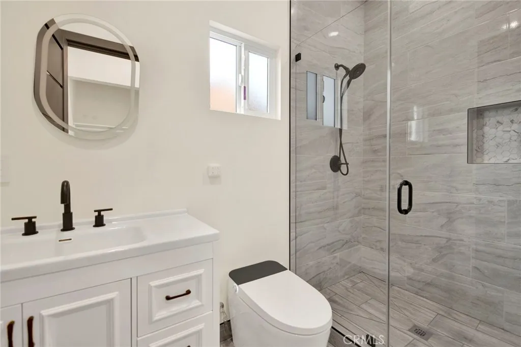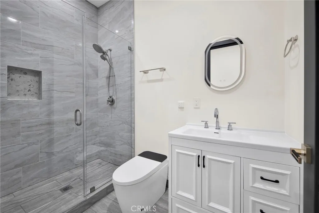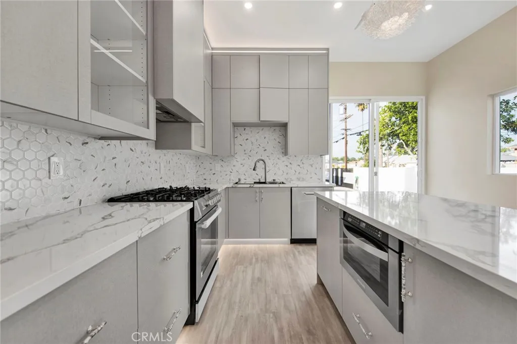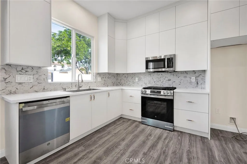 Experience modern luxury in this exceptional North Hollywood property featuring an extensively rebuilt and completely reimagined main residence with permitted additions, resulting in a home where very little of the original structure remains, along with a newly built ADU offering outstanding flexibility and privacy. The main residence offers approximately 1,995 sq. ft. with 4 bedrooms and 3 bathrooms, thoughtfully designed with soaring 10-foot ceilings and a bright open-concept layout that creates an impressive sense of space and comfort. A striking metallic double-door entry welcomes you into a spacious living area highlighted by a sleek electric fireplace, perfect for relaxing or entertaining guests. The designer kitchen showcases a modern aesthetic with a large center island, contemporary cabinetry, premium finishes, and new appliances, seamlessly connecting the kitchen, dining, and living areas to create an ideal flow for everyday living. Quality construction and attention to detail continue throughout the home, including a premium 3-layer presidential shingle roof, contemporary finishes, and carefully curated materials that deliver both durability and style. Only high-quality materials were used throughout the construction, reflecting a no-corners-cut approach and a strong commitment to craftsmanship. The property also features a private backyard dedicated to the main residence, offering an inviting outdoor space for gatherings, relaxation, or future landscaping possibilities. The newly constructed ADU offers approximately 825 sq. ft. with 2 bedrooms and 2 bathrooms, c