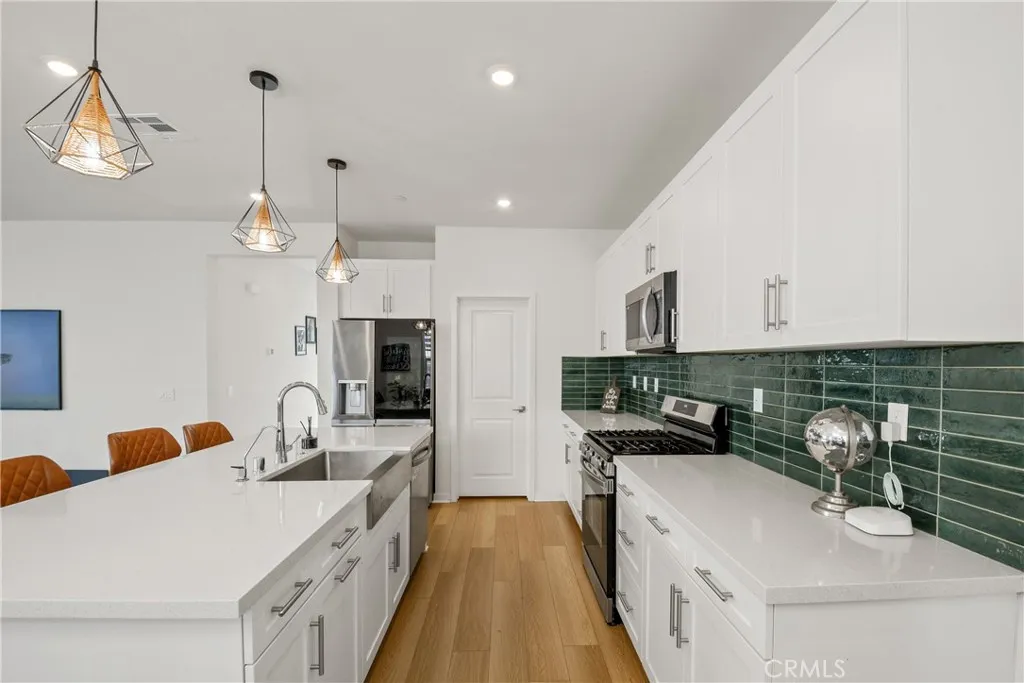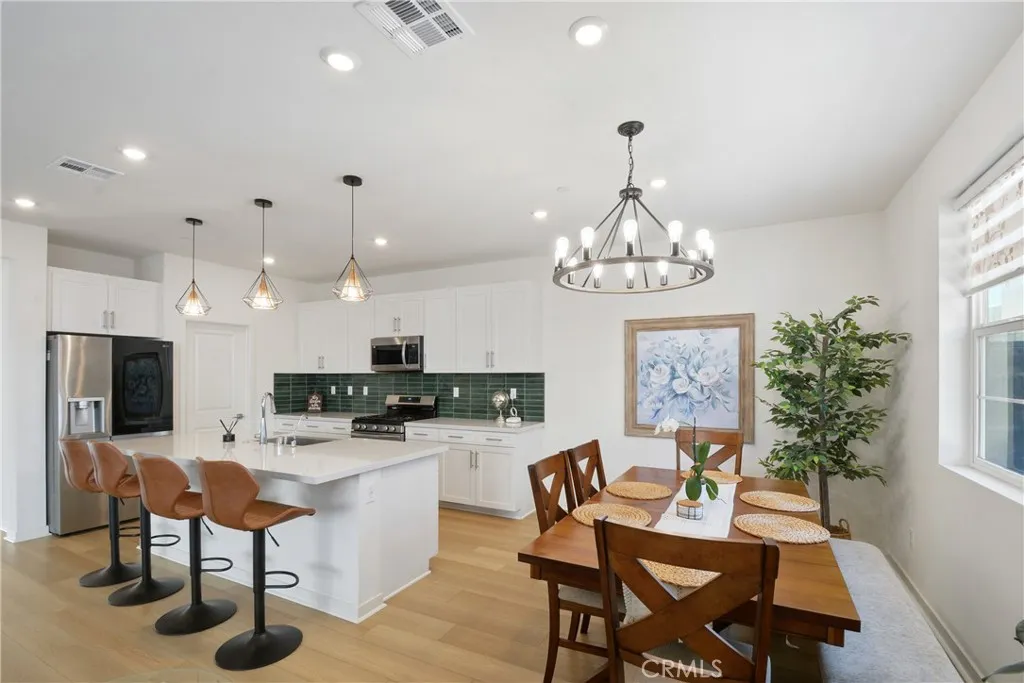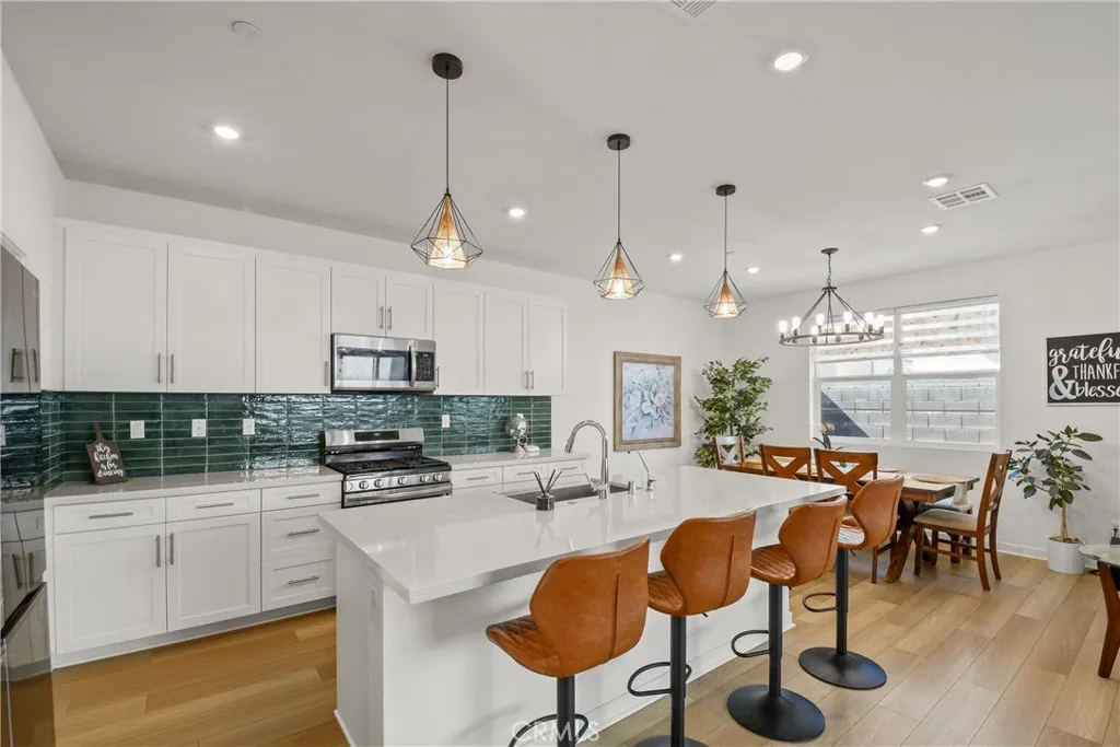 Welcome to 15916 Caterpillar Drive in Fontana, CA, a beautiful modern home located in the gated Narra Hills community in North Fontana. Built with contemporary design and energy efficiency in mind, this home offers the perfect combination of newer construction, mountain views, and resort-style community amenities. The home features a bright open floor plan where the living room, dining area, and kitchen connect seamlessly for easy everyday living and entertaining. Large windows bring in abundant natural light and showcase scenic mountain views, while luxury vinyl plank flooring on the main level adds both durability and modern style. This thoughtfully designed layout includes three bedrooms, two and a half bathrooms, and a spacious upstairs loft that can be used as a home office, media room, playroom, or additional living space. The primary suite offers generous space and a private retreat feel, creating a comfortable place to relax. Energy-efficient upgrades include owned solar panels, a tankless water heater, and a whole-home water softening system, helping improve comfort and long-term efficiency. The backyard is designed for outdoor entertaining and relaxing, offering a modern outdoor space to enjoy Southern California living. Residents of Narra Hills enjoy access to resort-style amenities, including pickleball courts, dog parks, a playground, fire pits, BBQ and picnic areas, and a large community center designed for gathering and recreation. Conveniently located in North Fontana near Sierra Lakes Golf Club, shopping centers, restaurants, parks, and major freeway access