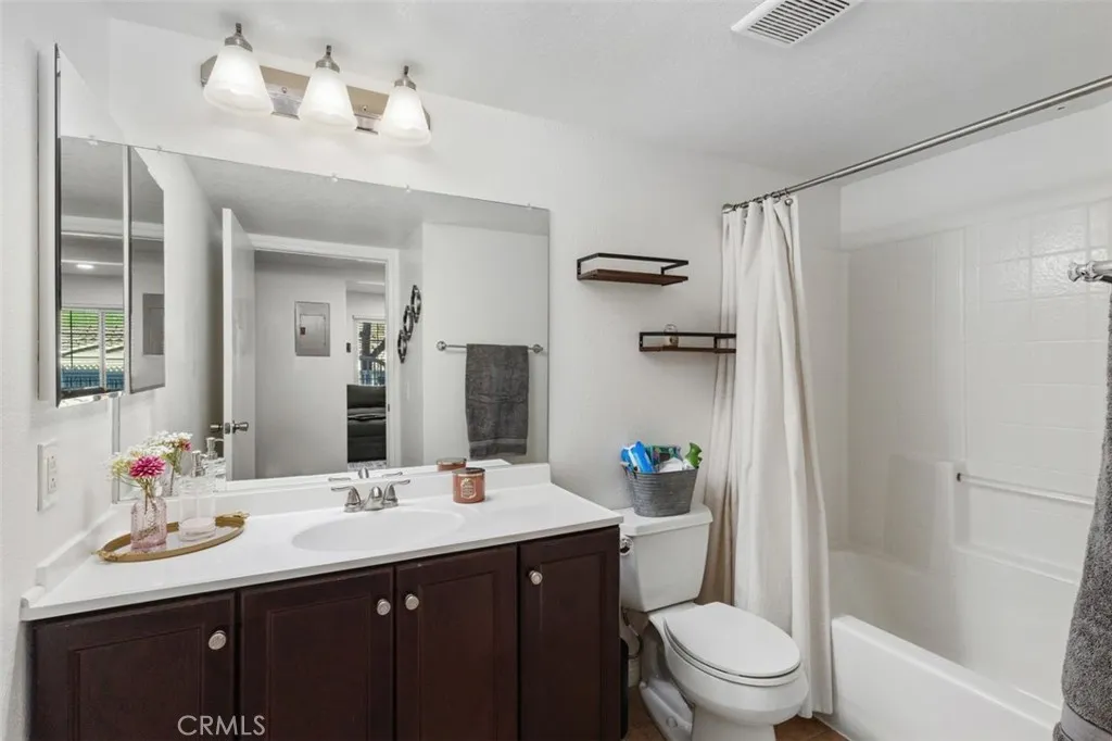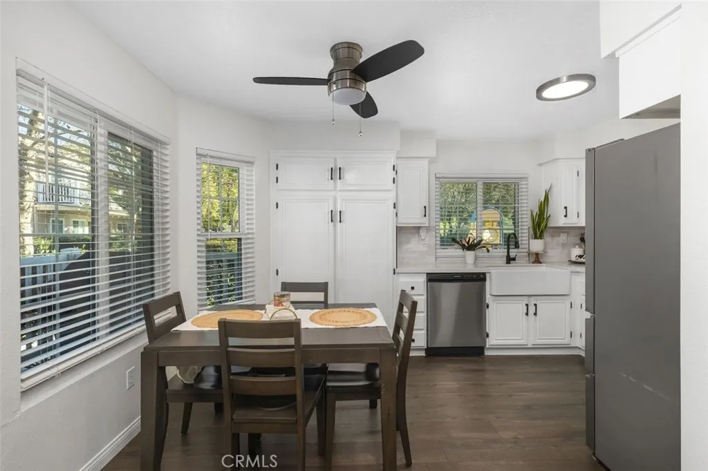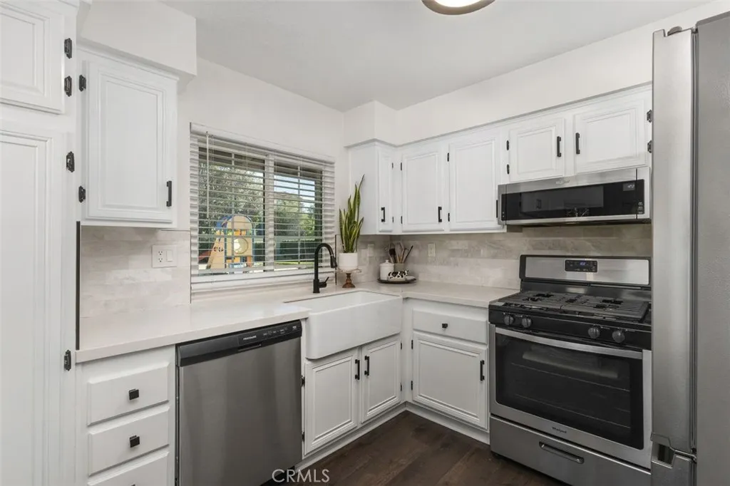 Located within the gated Villas at Hidden Ridge community, this lower level, single story end unit condo offers exceptional privacy, comfort, and a scenic Trabuco Canyon setting known for its parks, hiking trails, and active outdoor lifestyle while remaining close to shopping, dining, and convenient freeway access. The thoughtfully updated interior features recessed lighting, ceiling fans, and rich-tone vinyl plank flooring throughout. An upgraded kitchen showcases a clean, contemporary style with quartz countertops, tile backsplash, farmhouse sink, and stainless steel appliances. The home offers two bedrooms and two full bathrooms, including a generous primary suite with a walk-in closet. Additional highlights include indoor laundry hookups and a spacious fenced front porch that creates a welcoming and private outdoor retreat that's perfect for relaxing or entertaining. The property also includes a detached single-car garage and one assigned parking space. Residents enjoy excellent HOA amenities, including a pool, spa, fitness center, and playground. This move in ready residence offers the ideal blend of tranquil canyon living and everyday convenience in one of the areas most desirable communities.