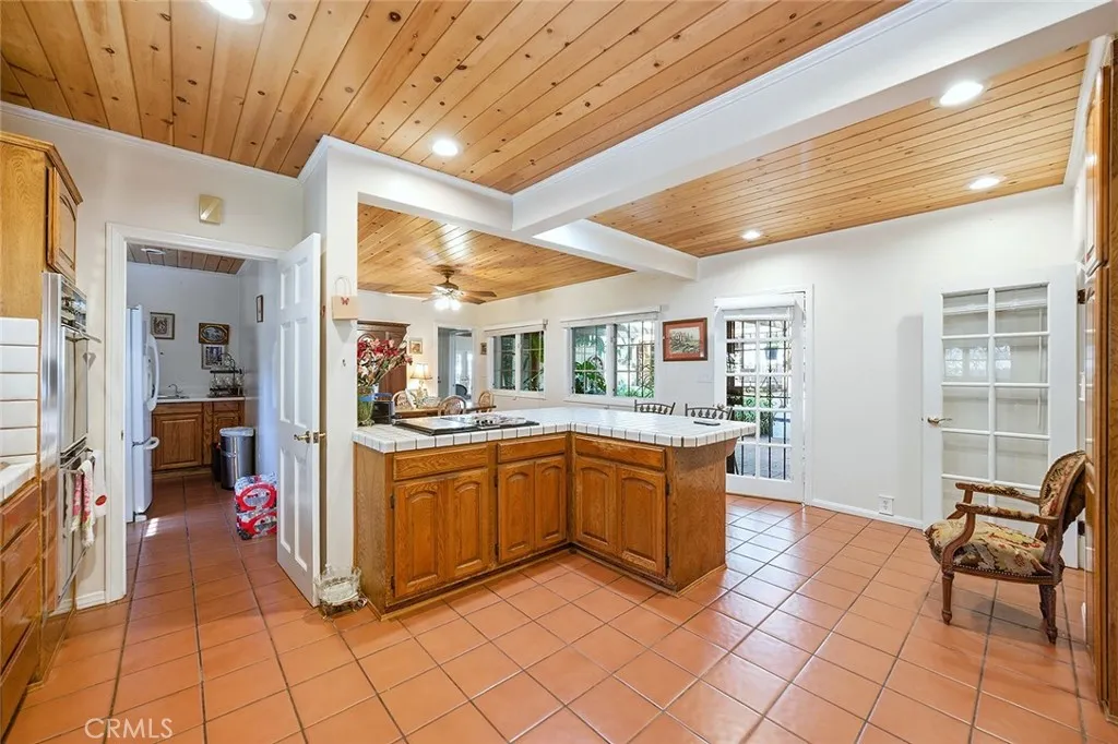 NORTH OF MENDOCINO AND HIGH IN-DEMAND ALTA DENA COUNTY CLUB AREA! Huge home sitting strategically on a very nice sized lot and affectionately referred to as THE BACOPA VILLA; A PRIVATE RESORT-INSPIRED RESIDENCE! Built in 1930, this one-of-a-kind architectural gem highlights exquisite details throughout. A beautiful tile entry welcomes you into formal living spaces with some just beautiful original hardwood flooring and highlighted by natural light from a dramatic skylight. The home features a step-up formal living room and a dining room BOTH with beautiful fireplaces. Nicely spacious family kitchen with breakfast area and butlers pantry! A generous family room creates an ideal setting for entertaining, and a separate room makes a perfect study/home office or downstairs bedroom. The second floor is accessible by two staircases and includes four bedrooms, two of which have private baths, plus a large laundry room (converted from a fifth bedroom!). One of the homes standout elements is the interior courtyard, ideal for alfresco dining and outdoor enjoyment. Additional highlights include a red barrel tile roof, tile floors, solar panels, and numerous mature fruit trees (orange, lemon, kumquat, avocado, fig). Lush landscaping, frontal mountain views, fountains, and more adding to this homes private-retreat like appeal. Situated on a generous 11,703 sq ft lot, the grounds offer ample outdoor space, and entertainment will be a pleasure! There is also a long driveway once inside the gated entryway that leads to an oversized two car detached garage with a charming Chateau look. If y
